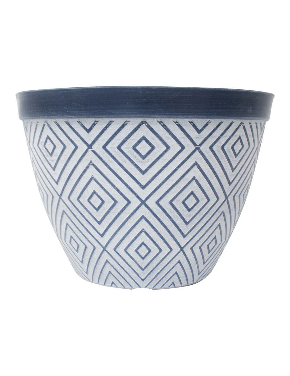 Maceta de plástico diseño rombos azul con blanco de 25.4×25.4x18cm