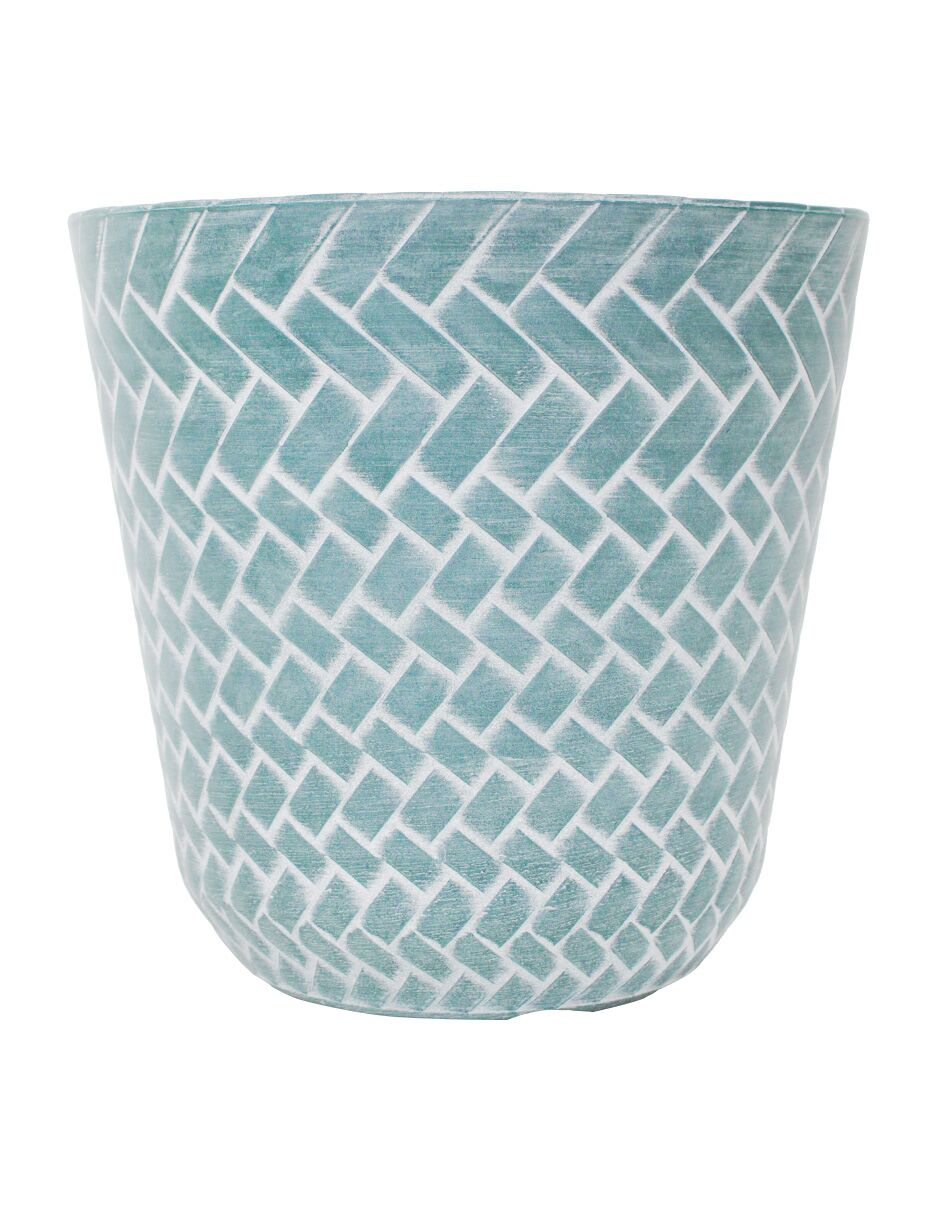 Maceta de plástico diseño tejido verde con blanco de 25.3×25.3×24.2cm