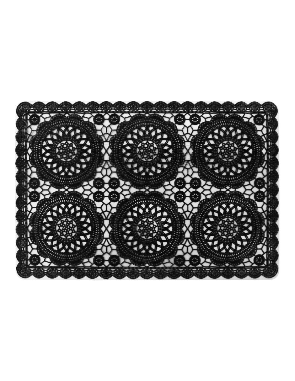 Mantel de plastico rectangular negro diseño circulos de 30x45x0.1cm