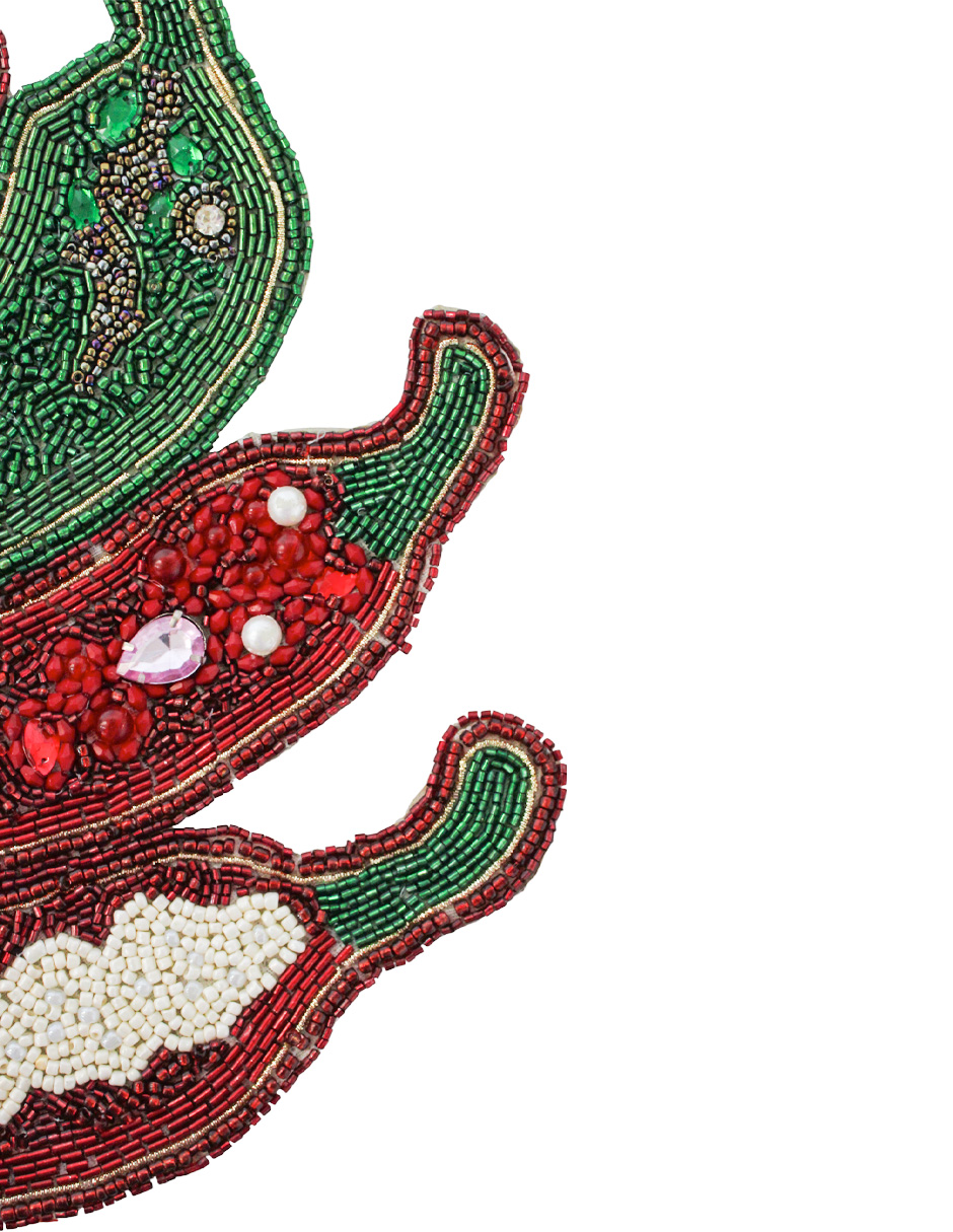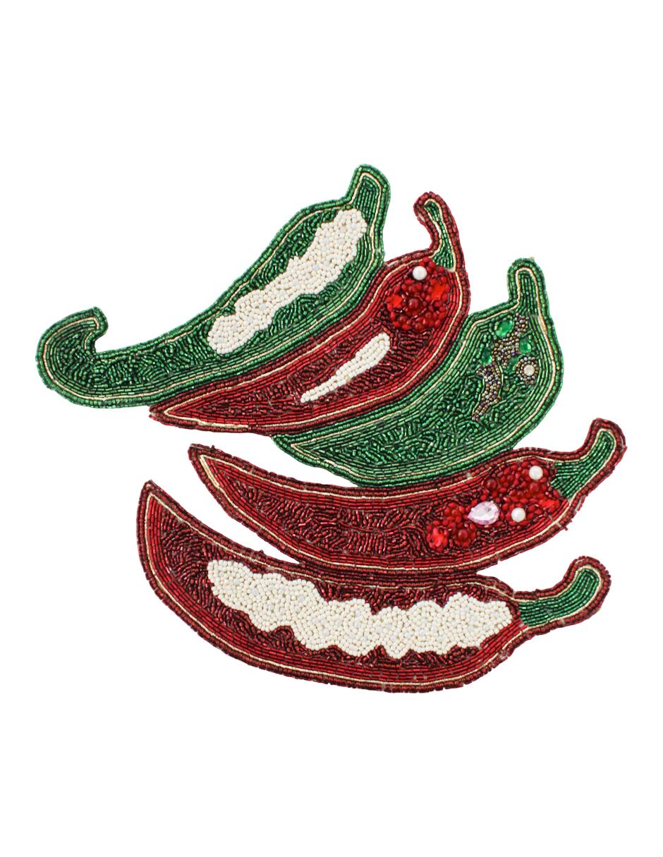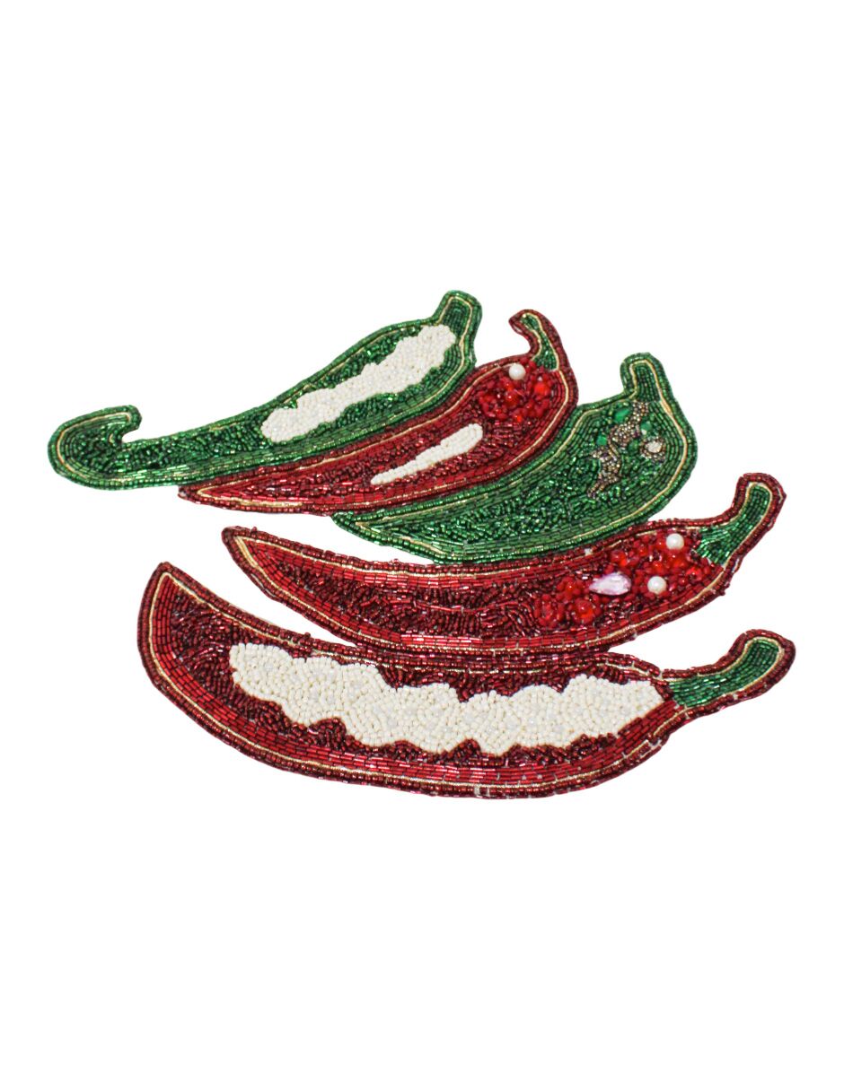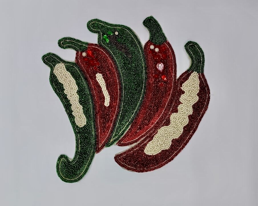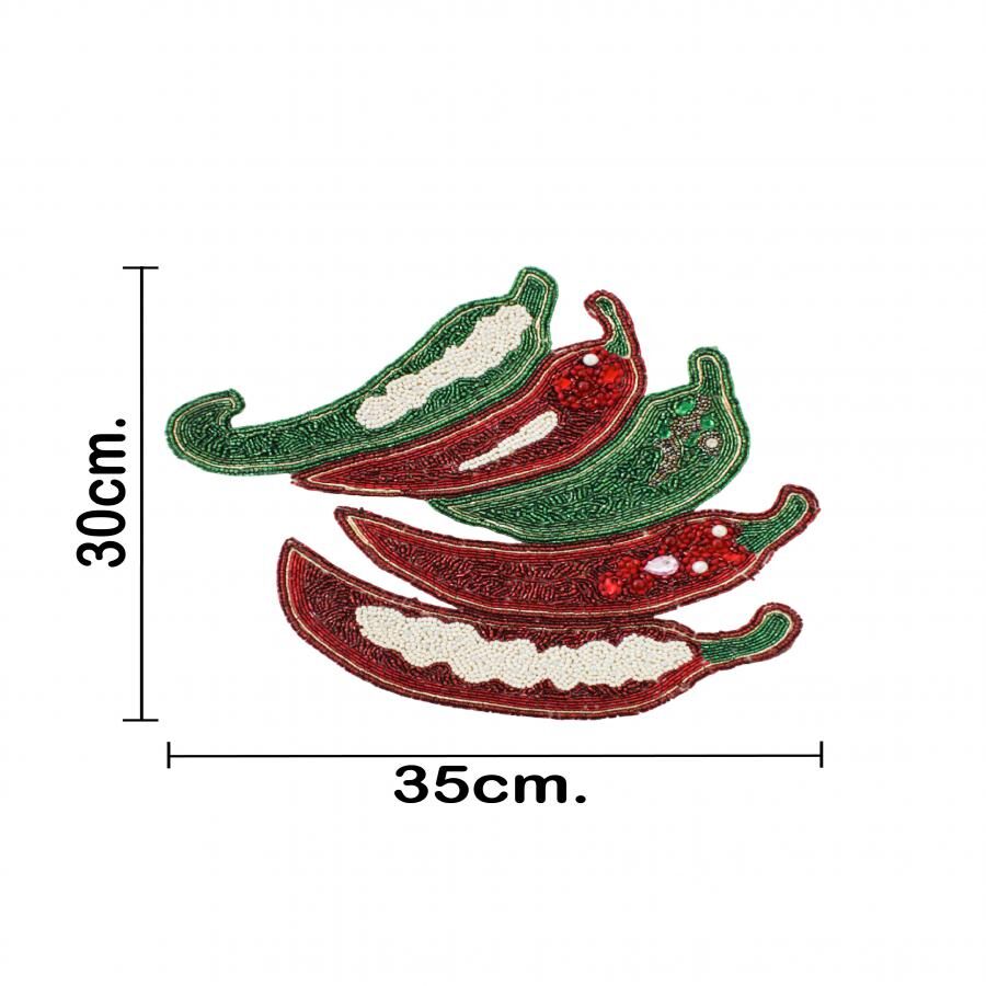 El Mantel Individual Chiles Mexicanos Chaquiras irradia sabor y alegría con un estilo culinario único. Este Mantel Individual Chiles Mexicanos Chaquiras no solo es un acento para tu mesa, sino una pieza que infunde pasión y tradición mexicana en cualquier comida. Siente la exclusividad del trabajo hecho a mano, pues el mosaico de Chaquiras dibuja un vibrante manojo de Chiles en tonos Verdes, Rojos y Beige, perfecto para una decoración memorable.
