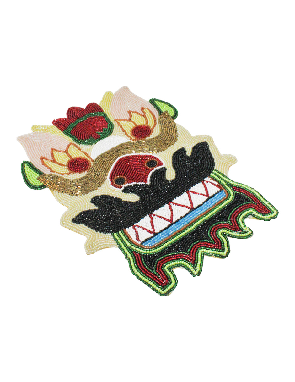 El Mantel Individual Dragón Chino Chaquiras irradia poder y misticismo con un lujo excepcional [cite: 2025-10-07]. Este Mantel Individual Dragón Chino Chaquiras no solo es un acento, sino una pieza que infunde fortuna y energía vibrante en tu mesa. Siente la exclusividad del trabajo hecho a mano, pues el mosaico de Chaquiras dibuja el poderoso motivo del Dragón Chino, flanqueado por colores auspiciosos (Rojo, Amarillo, Verde).