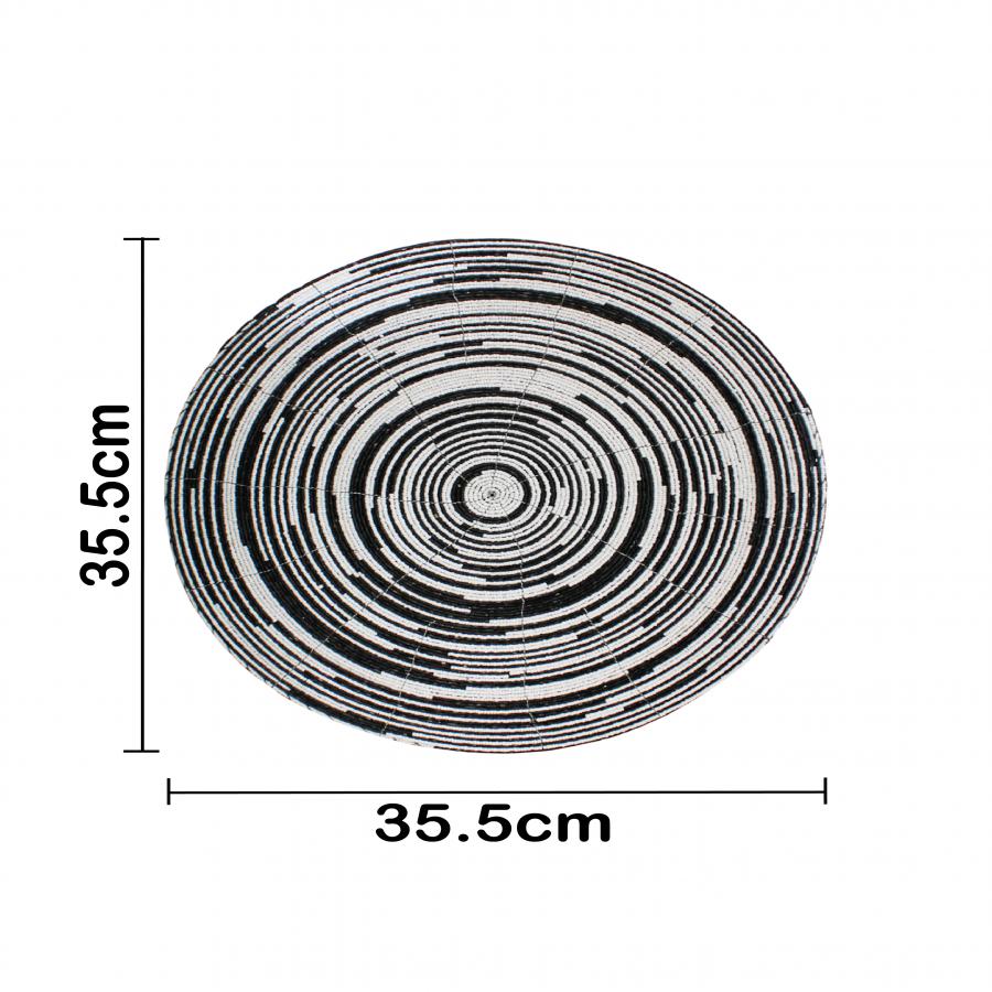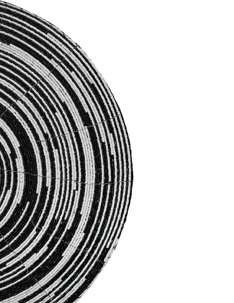 El Mantel Individual Órbita Negro Blanco irradia elegancia atemporal y lujo sofisticado. Este Mantel Individual Órbita Negro Blanco no solo es un acento, sino un objeto de diseño que infunde profundidad y dramatismo en tu comedor. Siente la exclusividad del trabajo hecho a mano, pues el mosaico de Chaquiras dibuja un fascinante patrón en espiral Negro y Blanco, un clásico que nunca pasa de moda.