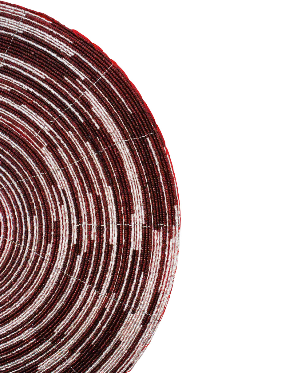 El Mantel Individual Órbita Rojo Plateado irradia pasión vibrante y lujo espectacular. Este Mantel Individual Órbita Rojo Plateado no solo es un tapete, sino una pieza que infunde dramatismo y celebración en tu comedor. Siente la exclusividad del trabajo hecho a mano, pues el mosaico de Chaquiras dibuja un fascinante patrón en espiral Rojo intenso y Plateado metálico, perfecto para eventos memorables.
