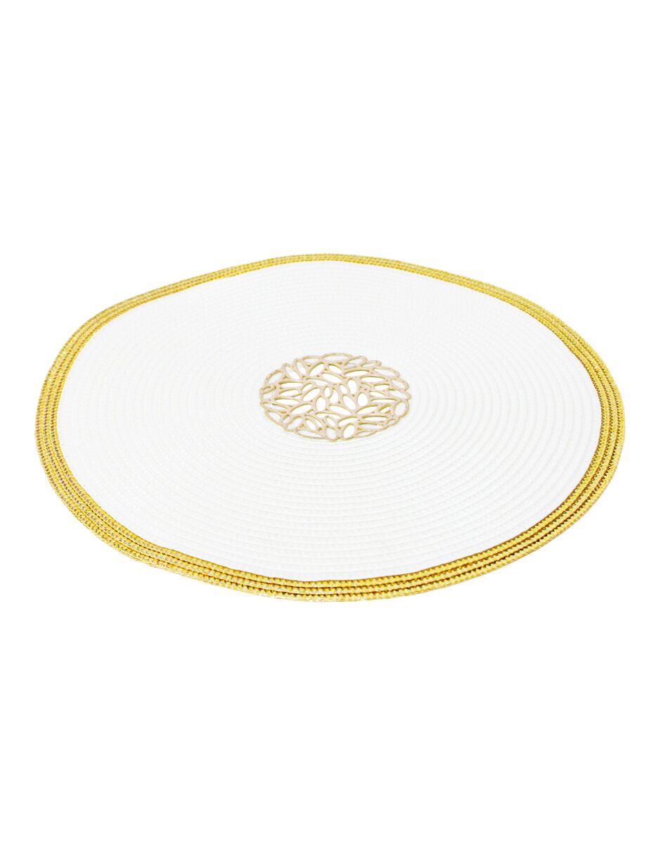 Mantel individual redondo blanco con círculo calado dorado de 0.1x38x0.1cm