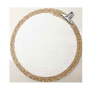 Mantel individual redondo tejido con cuerda blanca y orilla natural