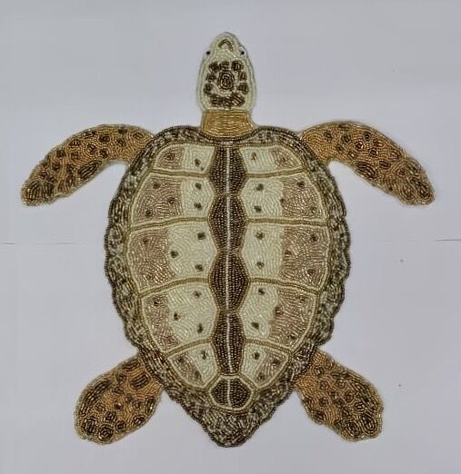El Mantel Tortuga Marina Chaquiras Beige irradia calma marina y lujo artesanal. Este Mantel Tortuga Marina Chaquiras Beige no solo es un tapete, sino una pieza que infunde una atmósfera de paz y sofisticación costera en tu mesa. Siente la exclusividad del trabajo hecho a mano, pues el mosaico de Chaquiras dibuja la forma detallada de una Tortuga Marina en tonos Beige, Dorado y Marrón.