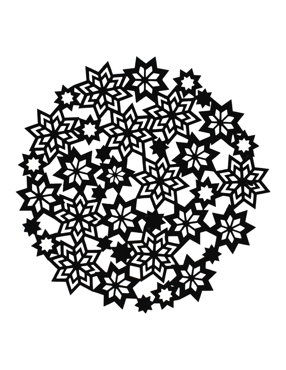 Mantel redondo de fieltro negro diseño estrellas caladas de 40x40x0.3cm