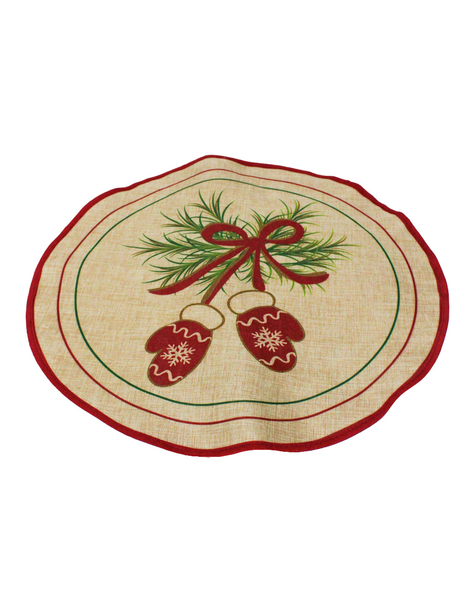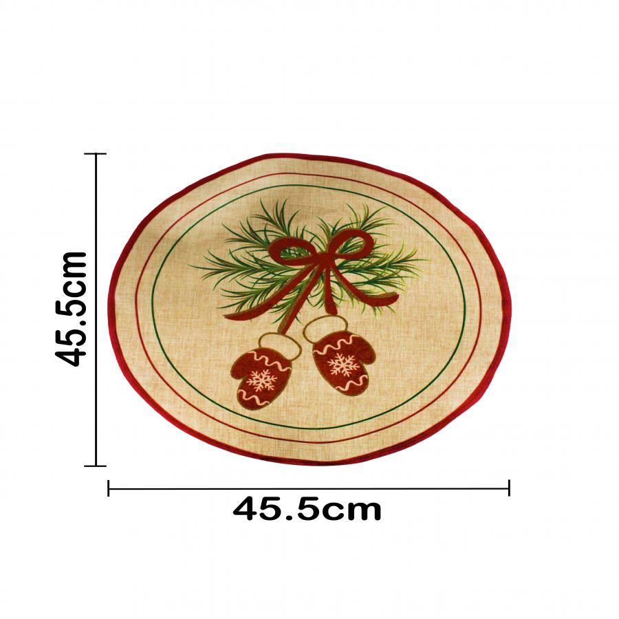 Mantel individual redondo con un tierno diseño de guantes navideños. Esta pieza es perfecta para darle a tu mesa un toque acogedor y festivo, creando un ambiente lleno de calidez y encanto. Imagina las cenas con tus seres queridos alrededor de este mantel, compartiendo risas y construyendo recuerdos inolvidables. Material: poliéster. Medidas: 45x45cm.