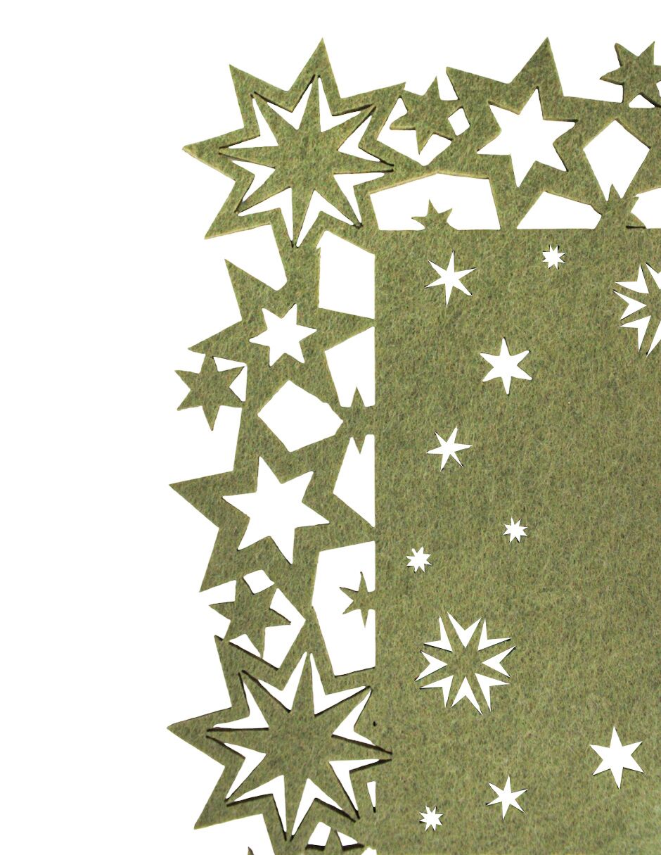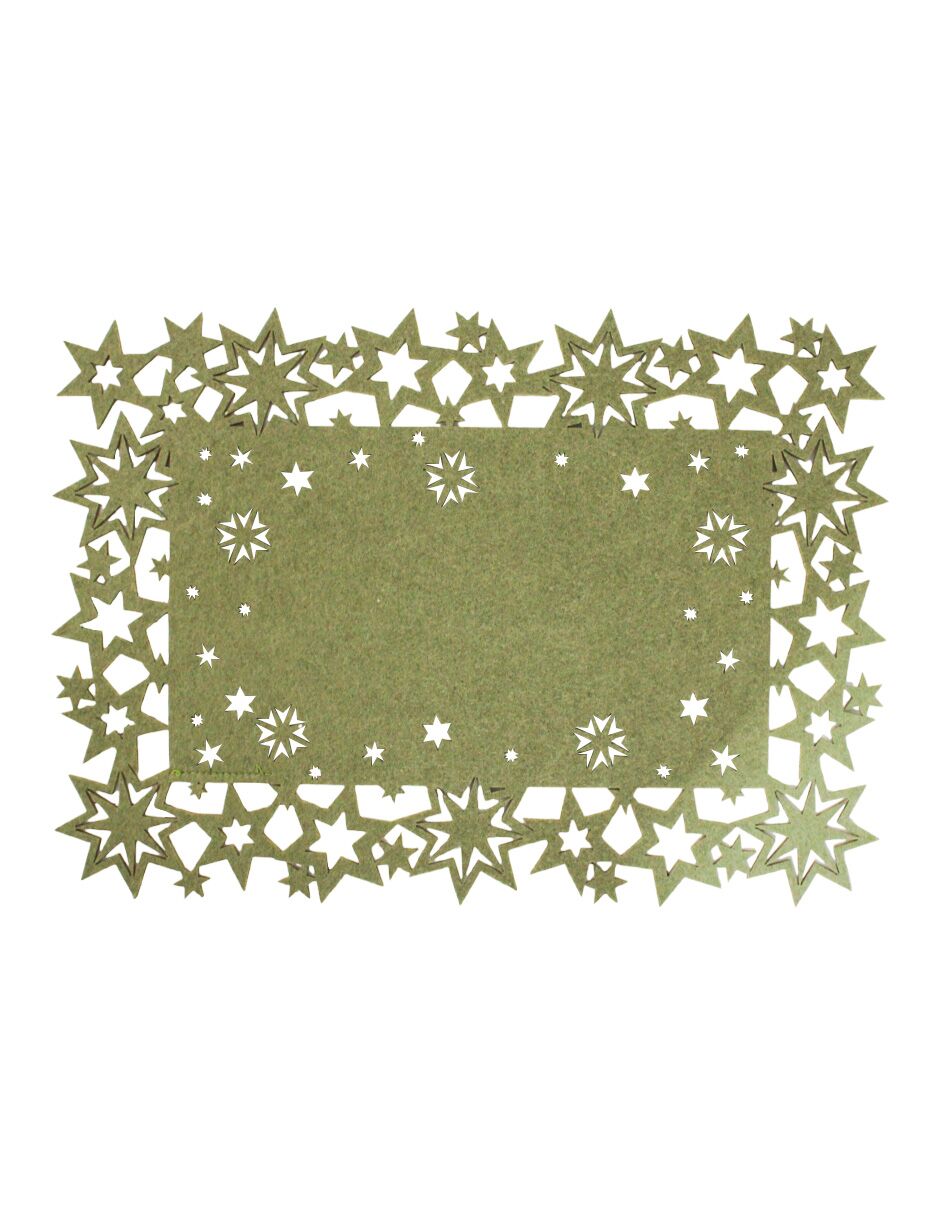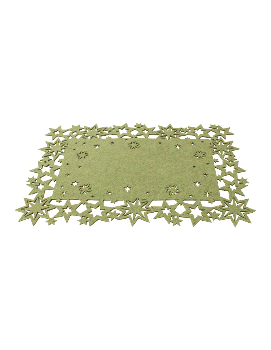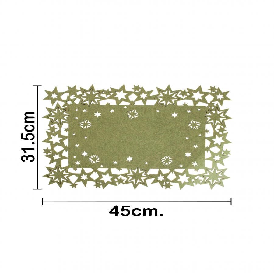 Un festivo mantel de fieltro verde con un diseño de estrellas, con medidas de 45x33x0.3 cm. Ideal para proteger tus superficies con un toque de tradición y fantasía.