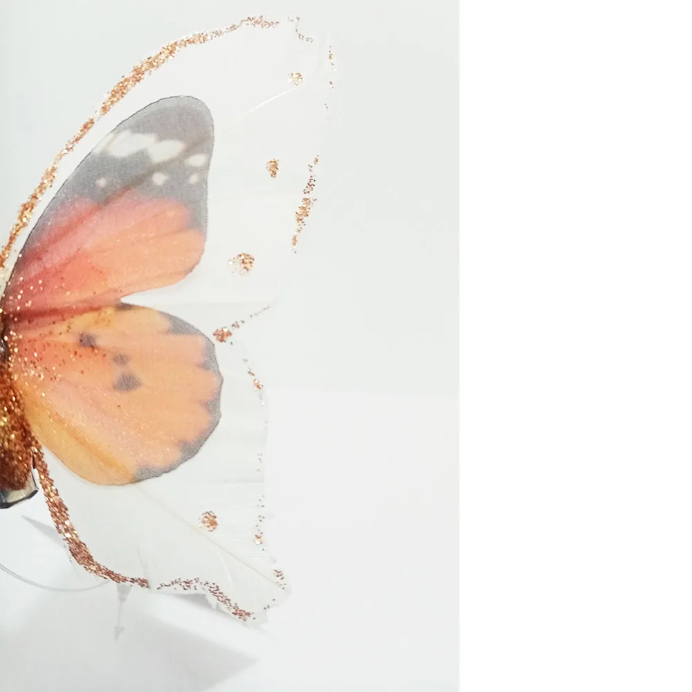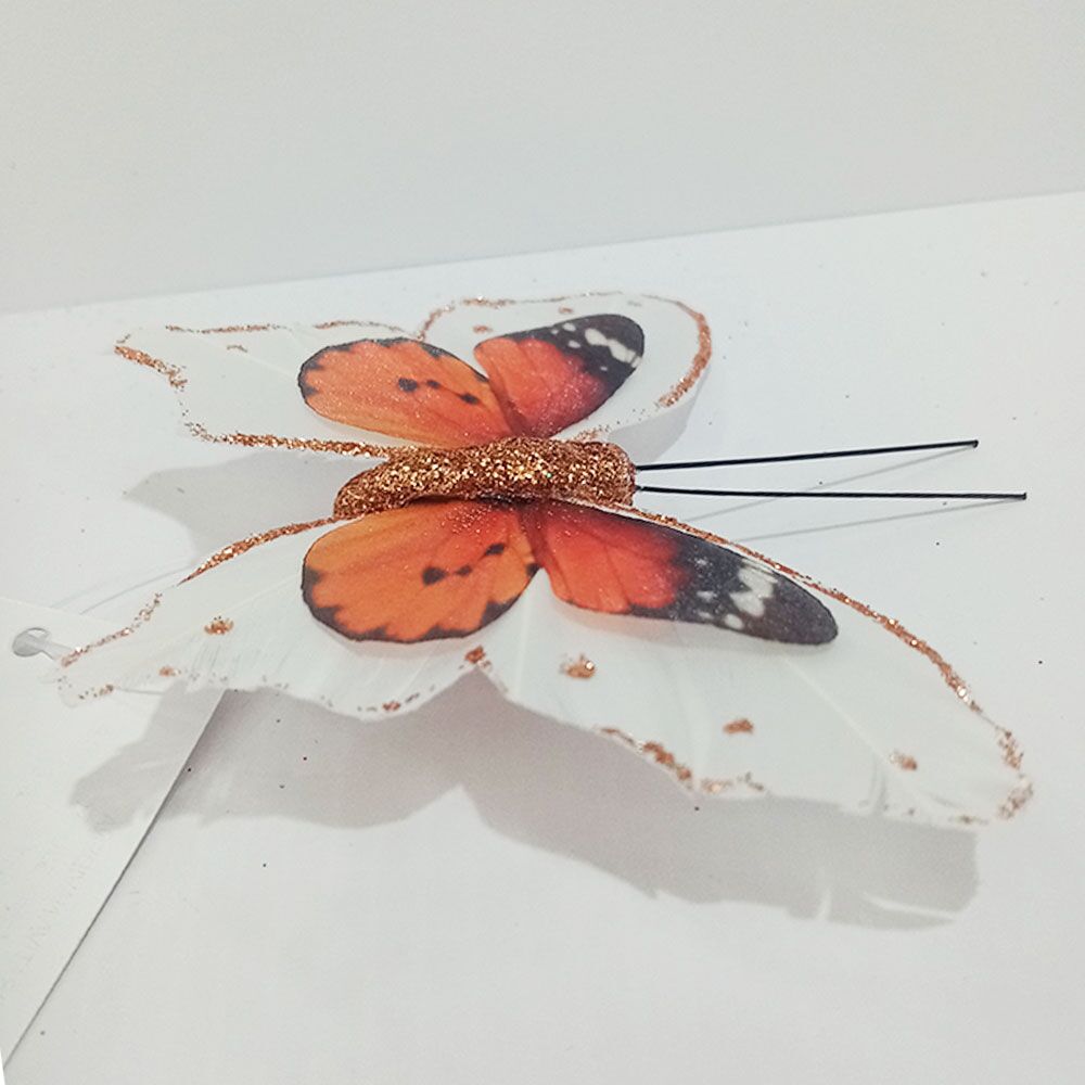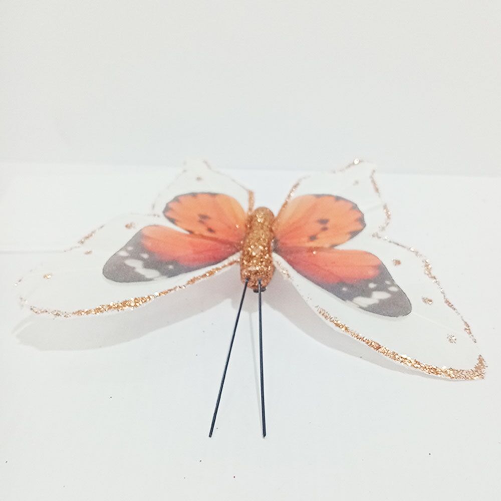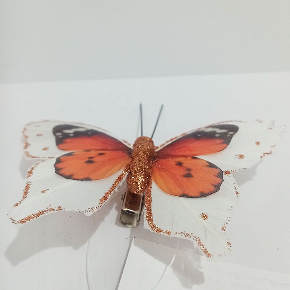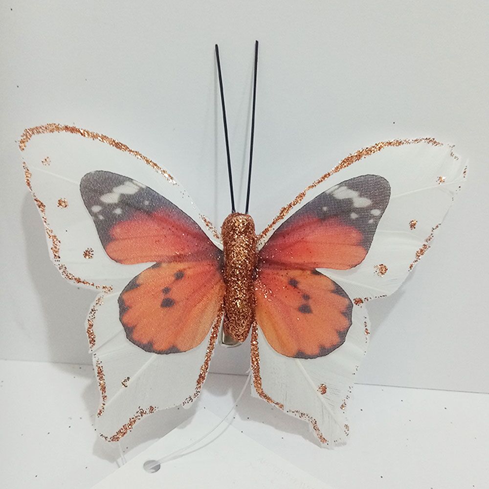 Mariposa naranja con blanco y pinza de 7×9.5x2cm