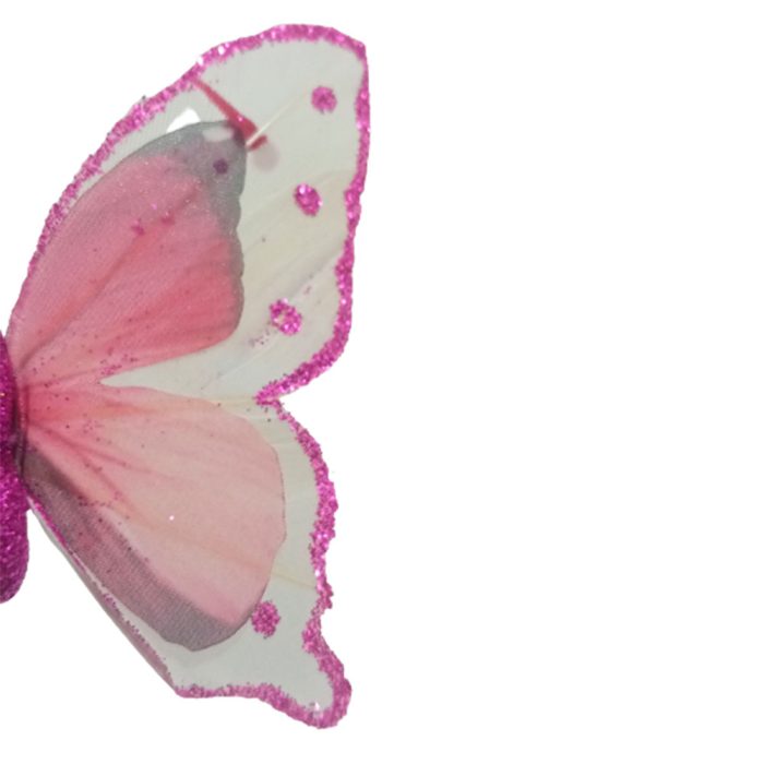 Mariposa rosa con blanco y pinza de 7×9.5x2cm