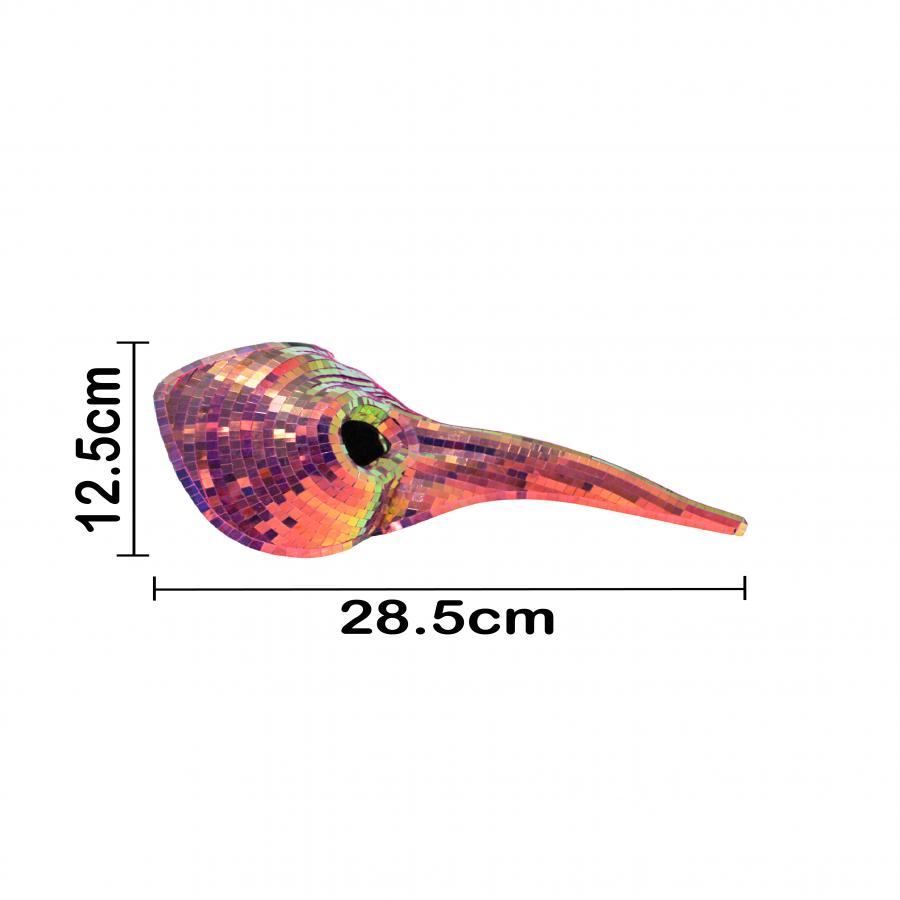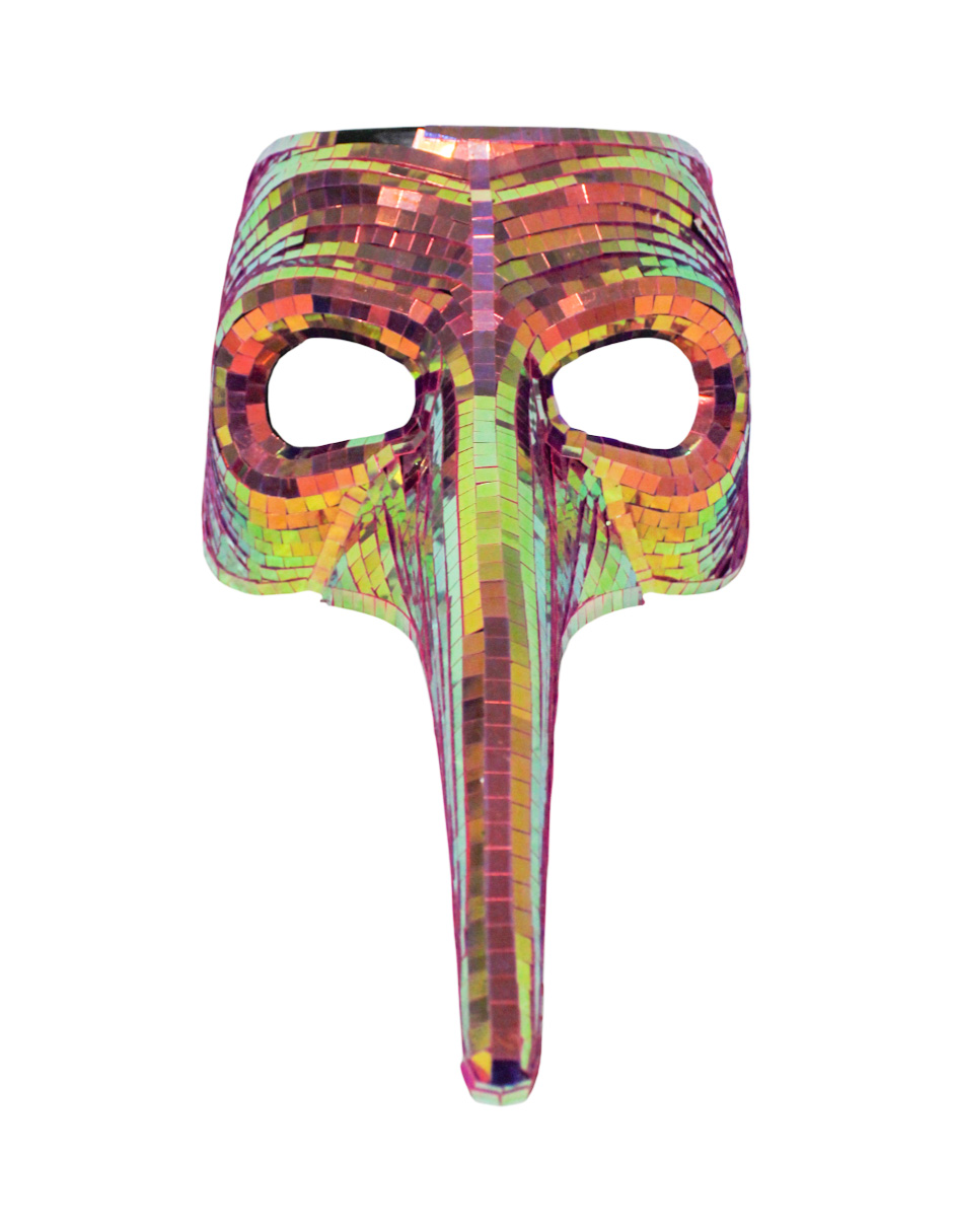 El acabado disco ball tornasol crea una atmósfera de renovación constante en tu imagen personal. Por lo tanto, usar esta máscara aporta una gran seguridad y armonía a tu rostro, ocultando y revelando tu identidad con elegancia. Sus facetas captan los colores del entorno y los transforman en un espectáculo visual. De igual forma, esta prenda te conecta con una energía de libertad, juego y confianza propia.