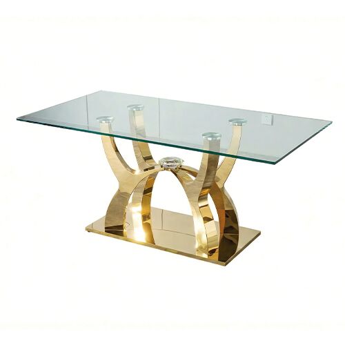 La Mesa de Comedor Geometric Gold aporta una sofisticación arquitectónica y una presencia de alto nivel inigualable a cualquier rincón de tu hogar. Esta pieza presenta una silueta de líneas fluidas y acabados de lujo que invitan a la calma y a la conexión con el diseño de interiores más exclusivo. Su diseño destaca por el equilibrio estético entre la transparencia del cristal templado de gran formato y la base escultural dorada que mantiene la distinción sin comprometer la ligereza visual. Gracias a esto, la armonía del buen gusto fluye con naturalidad en tu comedor o área de reuniones principal. El brillo de su estructura metálica evoca una atmósfera de estabilidad y claridad en tus espacios contemporáneos. Este elemento revitaliza tu decoración con un aire de prestigio profesional y vanguardista.