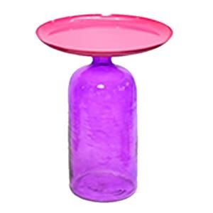 Mesa de vidrio morada con cubierta de metal rosa de 25.5×25.5x35cm