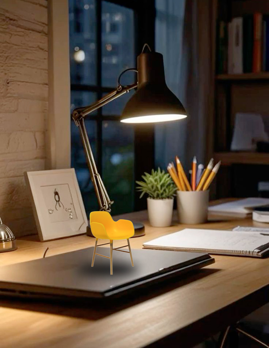 Un toque de elegancia en miniatura. Esta mini silla amarilla con patas de madera es la pieza perfecta para un escritorio o mesa de noche. Con sus medidas de 9.5×10.5×13.5cm, su diseño único evoca la sofisticación y el estilo moderno.