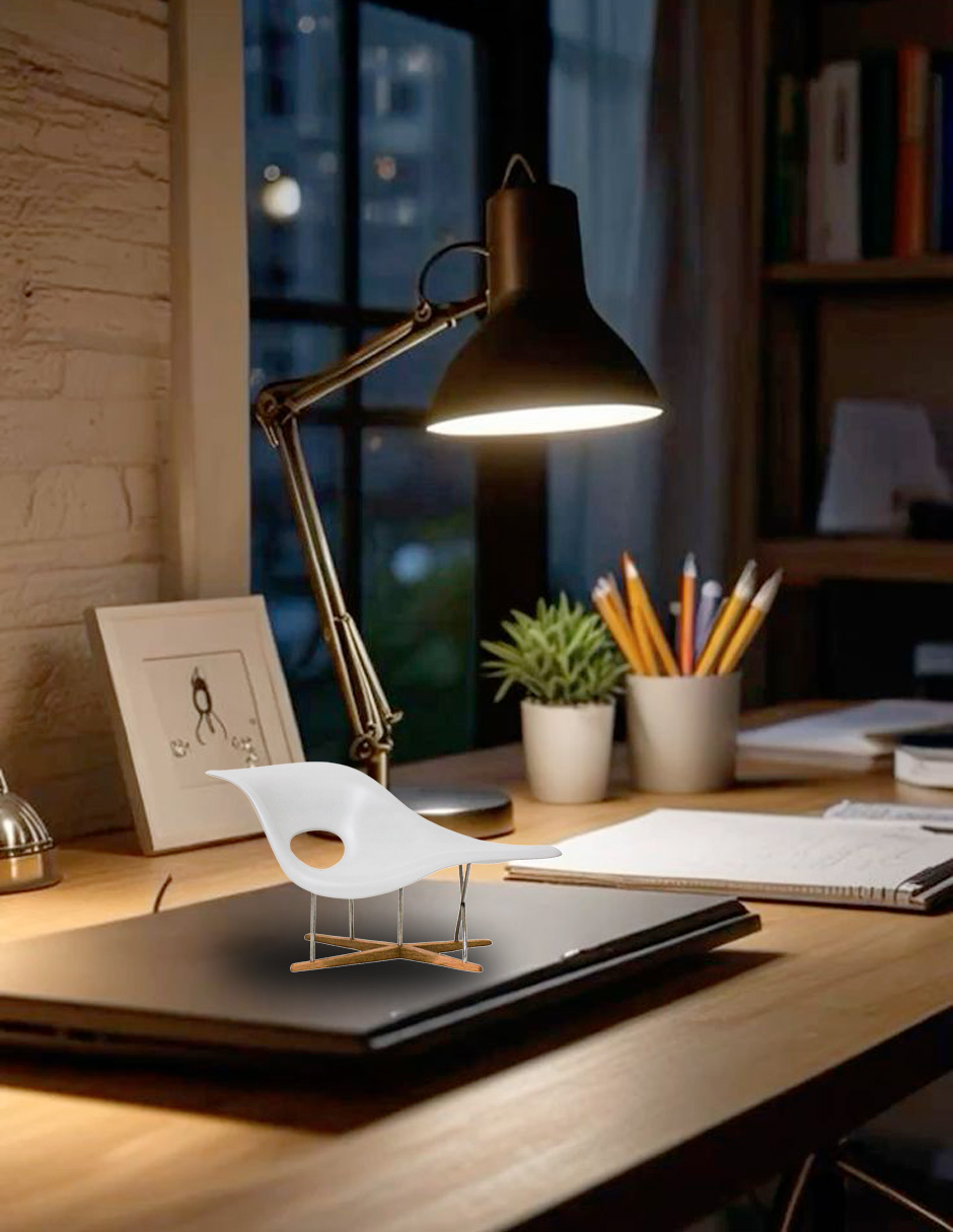 Un toque de elegancia y funcionalidad en miniatura. Esta mini silla Eames blanca es la pieza perfecta para un escritorio o mesa de noche. Con sus medidas de 13.5x24x13.2cm, su diseño único evoca la sofisticación y el estilo moderno.