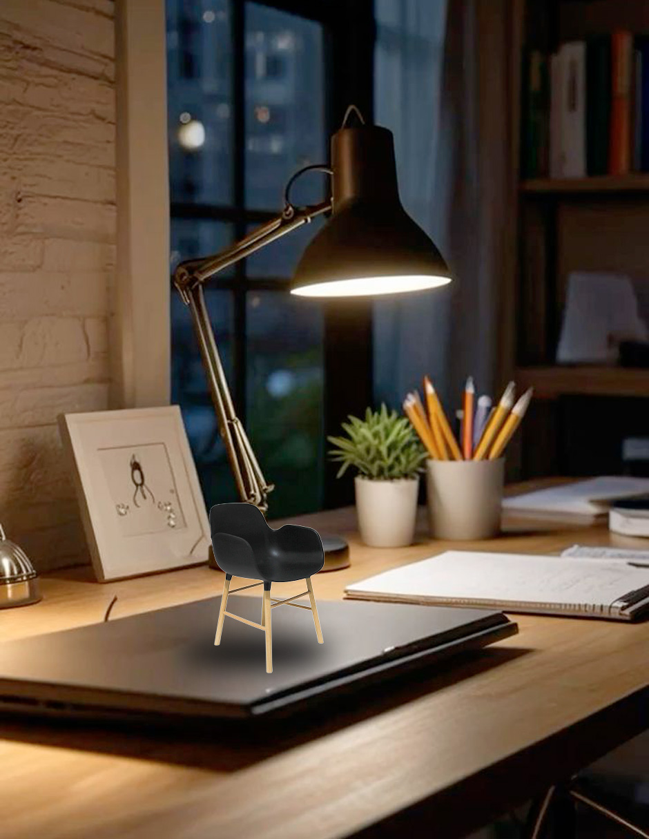 Un toque de elegancia en miniatura. Esta mini silla negra con patas de madera es la pieza perfecta para un escritorio o mesa de noche. Con sus medidas de 9.5×10.5×13.5cm, su diseño único evoca la sofisticación y el estilo moderno.
