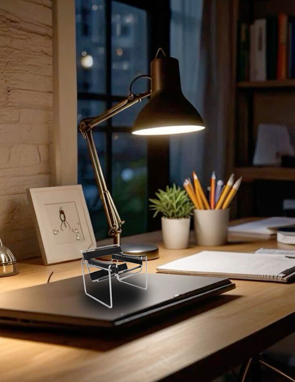 Calidad y Resistencia en la Mini Silla Minimalista Negra Lo que define a este modelo es su fabricación con materiales de lujo. La estructura de la Mini Silla Minimalista Negra ha sido cuidada para ofrecer una forma robusta y una silueta impecable. De este modo, cada ángulo de la pieza refleja una estética de alta fidelidad y un gusto refinado por lo moderno. Además, el acabado en color negro es sumamente elegante y fácil de integrar en ambientes de oficina o estudio. También cuenta con una base sólida que asegura su estabilidad y presencia. Sin duda, es un accesorio diseñado para perdurar como un elemento clave en tu repisa o escritorio profesional.