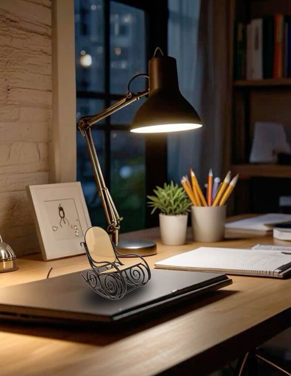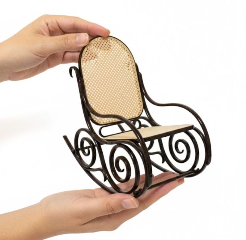 Calidad y Resistencia en la Mini Silla Tipo Mecedora Lo que define a este modelo es su fabricación con materiales de lujo. La estructura de la Mini Silla Tipo Mecedora ha sido cuidada para replicar las proporciones exactas y la curvatura del diseño original. De este modo, cada detalle refleja una estética de alta fidelidad y un gusto impecable. Además, su acabado liso es sumamente elegante y fácil de integrar en cualquier ambiente. También cuenta con una base equilibrada que asegura su estabilidad y presencia. Sin duda, es un accesorio diseñado para perdurar como un elemento clave en tu repisa o escritorio de oficina.