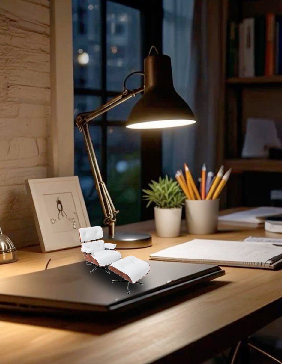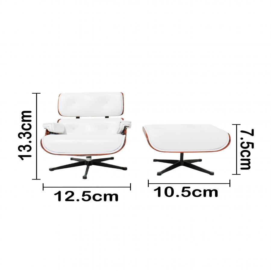 Un toque de elegancia y funcionalidad en miniatura. Este mini sillón Eames blanco con otomán es la pieza perfecta para un escritorio o mesa de noche. Con sus medidas de 13.5×20.5×12.2cm, su diseño único evoca la sofisticación y el estilo moderno.