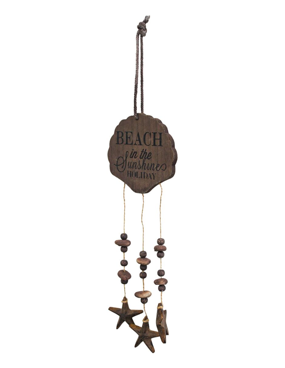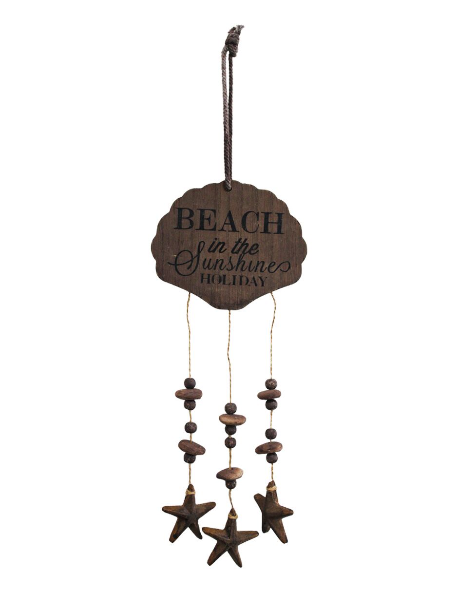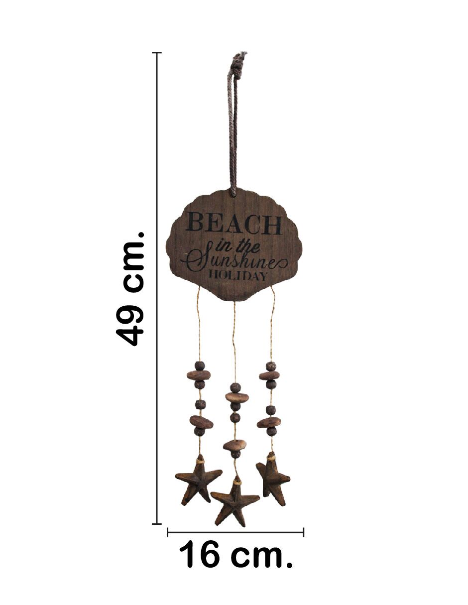 Mobil de madera diseño conchas con estrelas café de 16x3x49