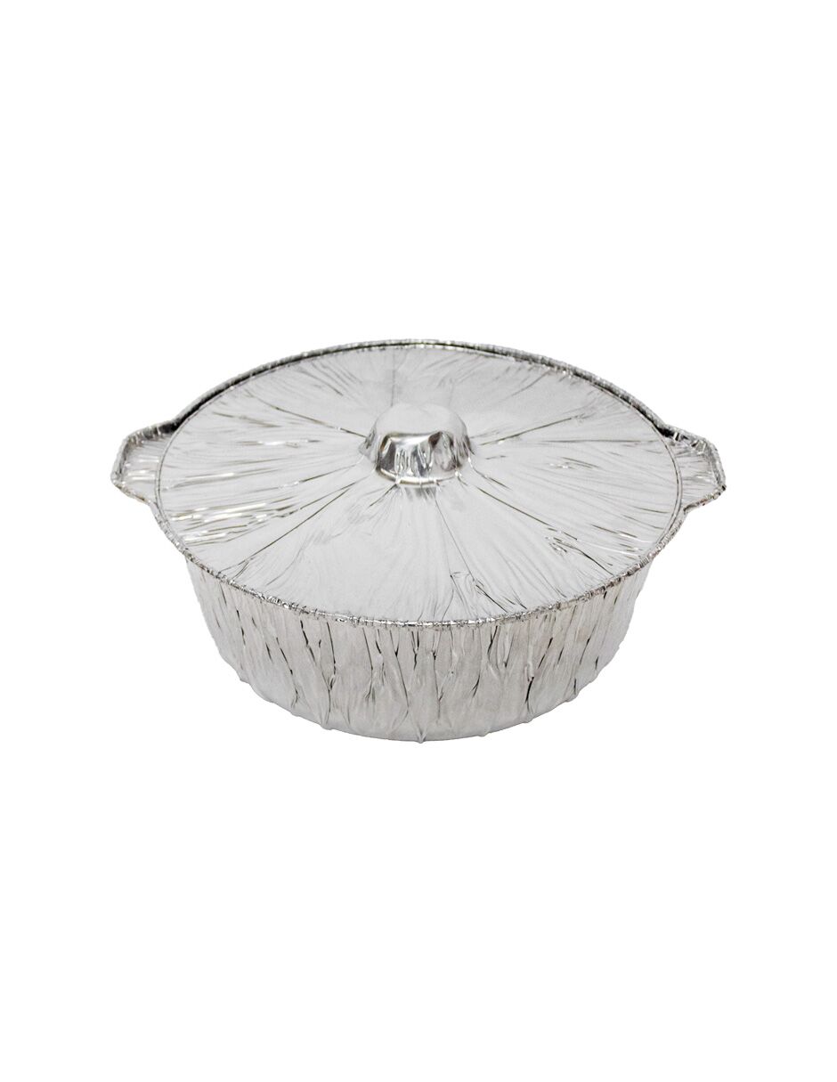 Molde de papel de aluminio redondo con tapa plateado de 33x21x10cm