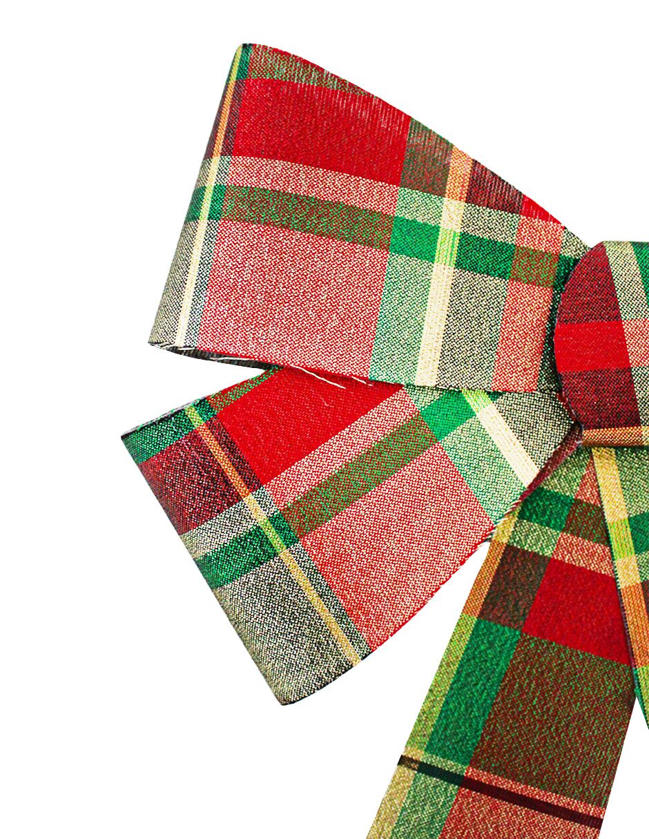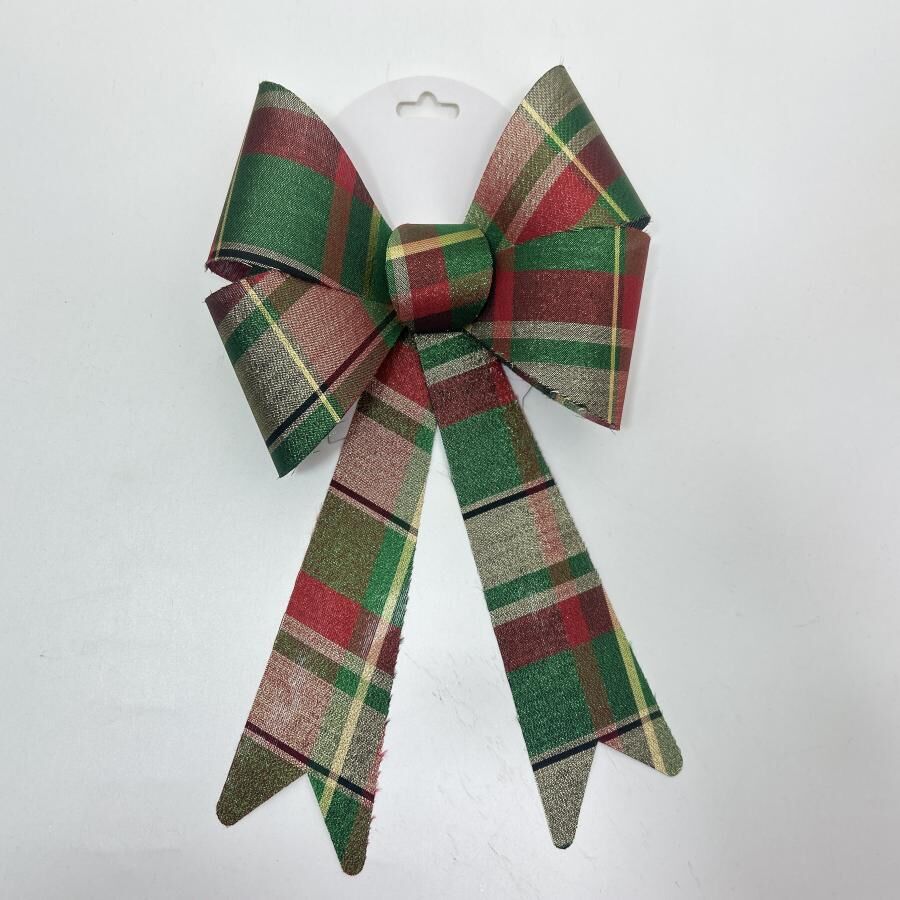 Un clásico moño escocés en rojo con verde. Es el toque final perfecto para tus regalos y decoraciones navideñas, añadiendo un toque tradicional y atemporal. Material: tela. Medidas: 23 x 29cm.