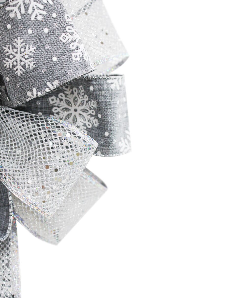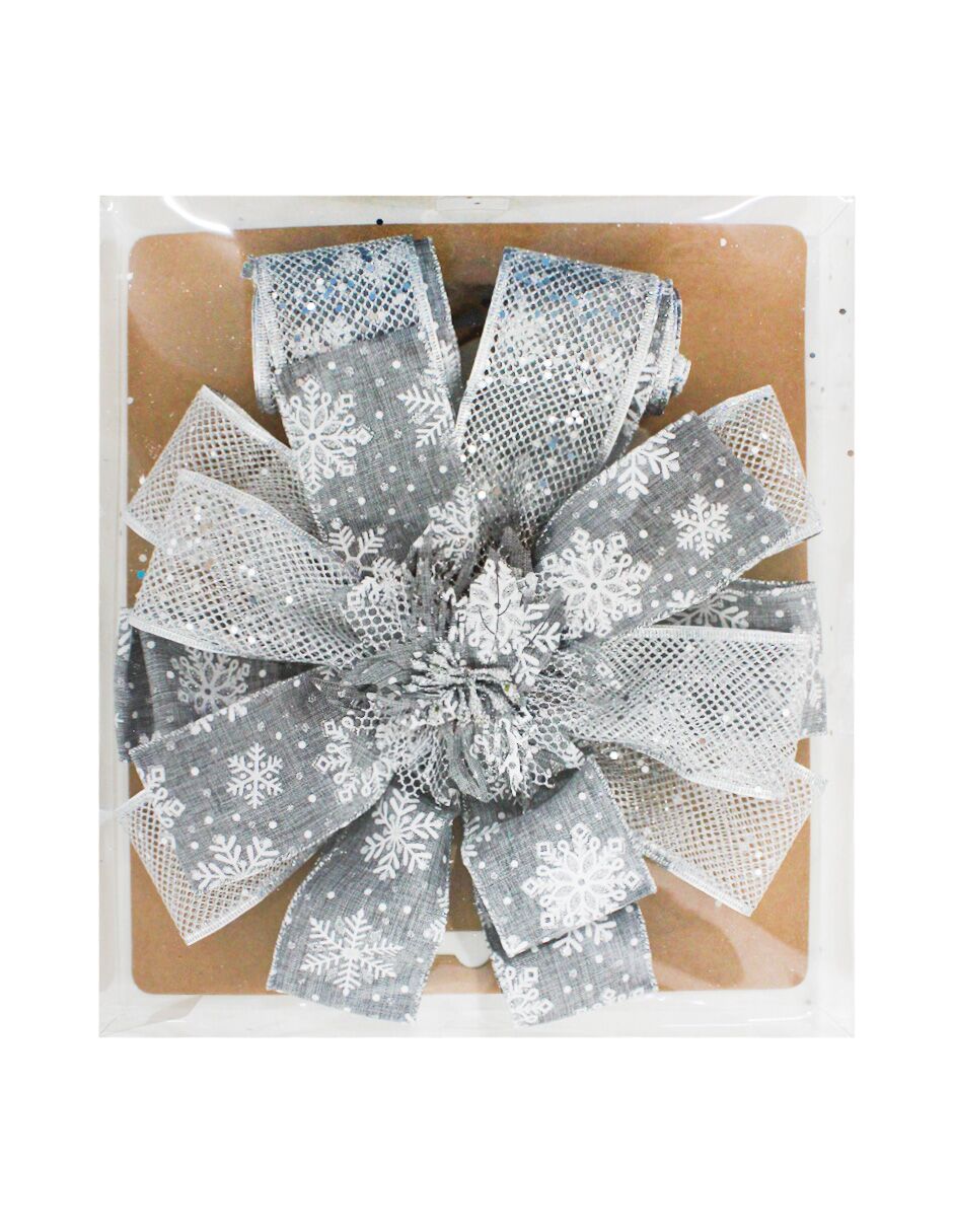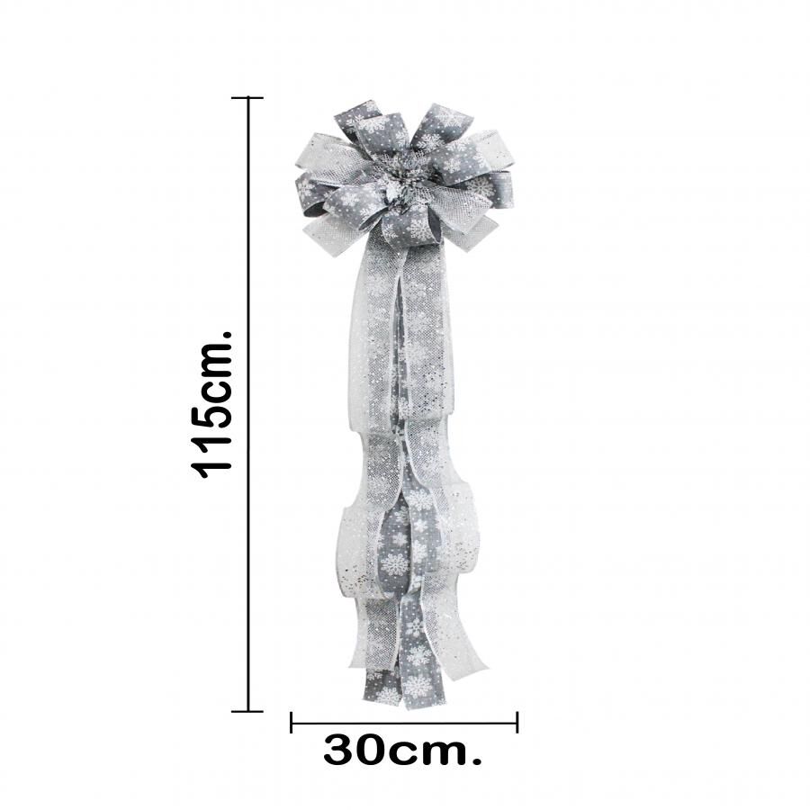 Un elegante moño navideño de lino con una sofisticada malla plateada. Es la pieza perfecta para añadir un toque de lujo y modernidad a tu decoración festiva. Su diseño versátil es ideal para adornar coronas, guirnaldas o el árbol de Navidad, creando un ambiente distinguido y lleno de estilo.