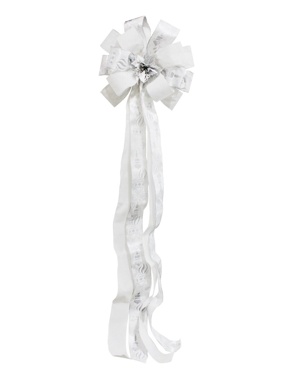 Moño Navideño Satín Blanco con Estampado Plateado Dorado