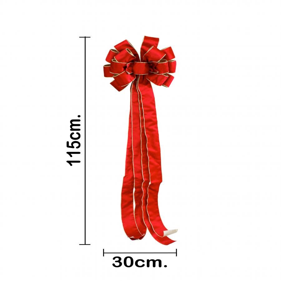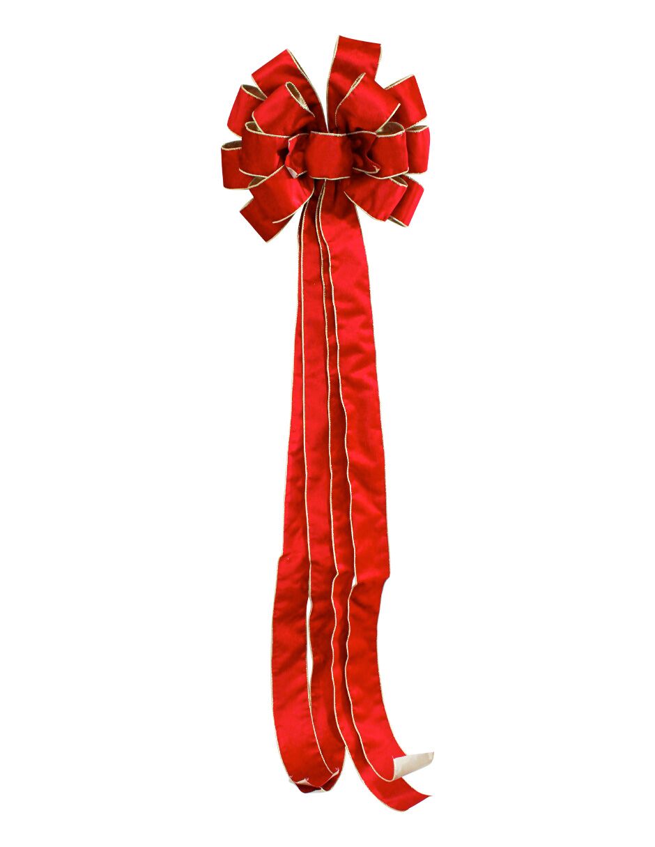 Moño Navideño Terciopelo Rojo con Orillas Doradas