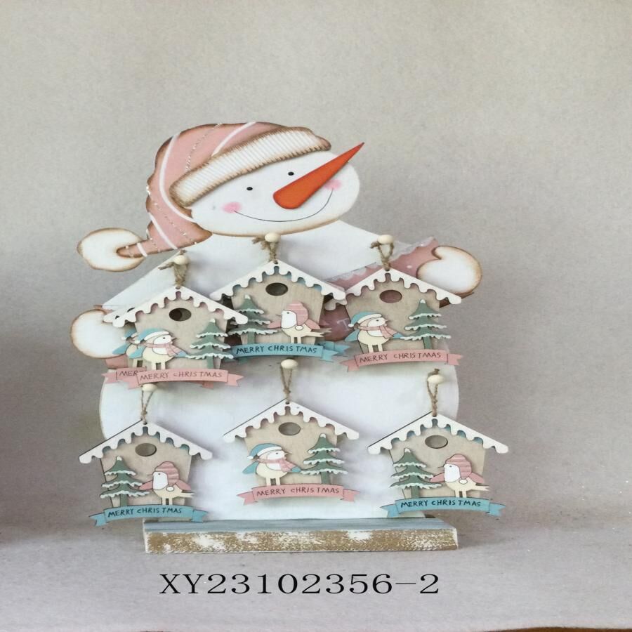 Un encantador muñeco de nieve de madera con 12 casas colgantes, con medidas de 6x25x43 cm. Ideal para añadir un toque de fantasía y festividad a tu decoración de temporada.