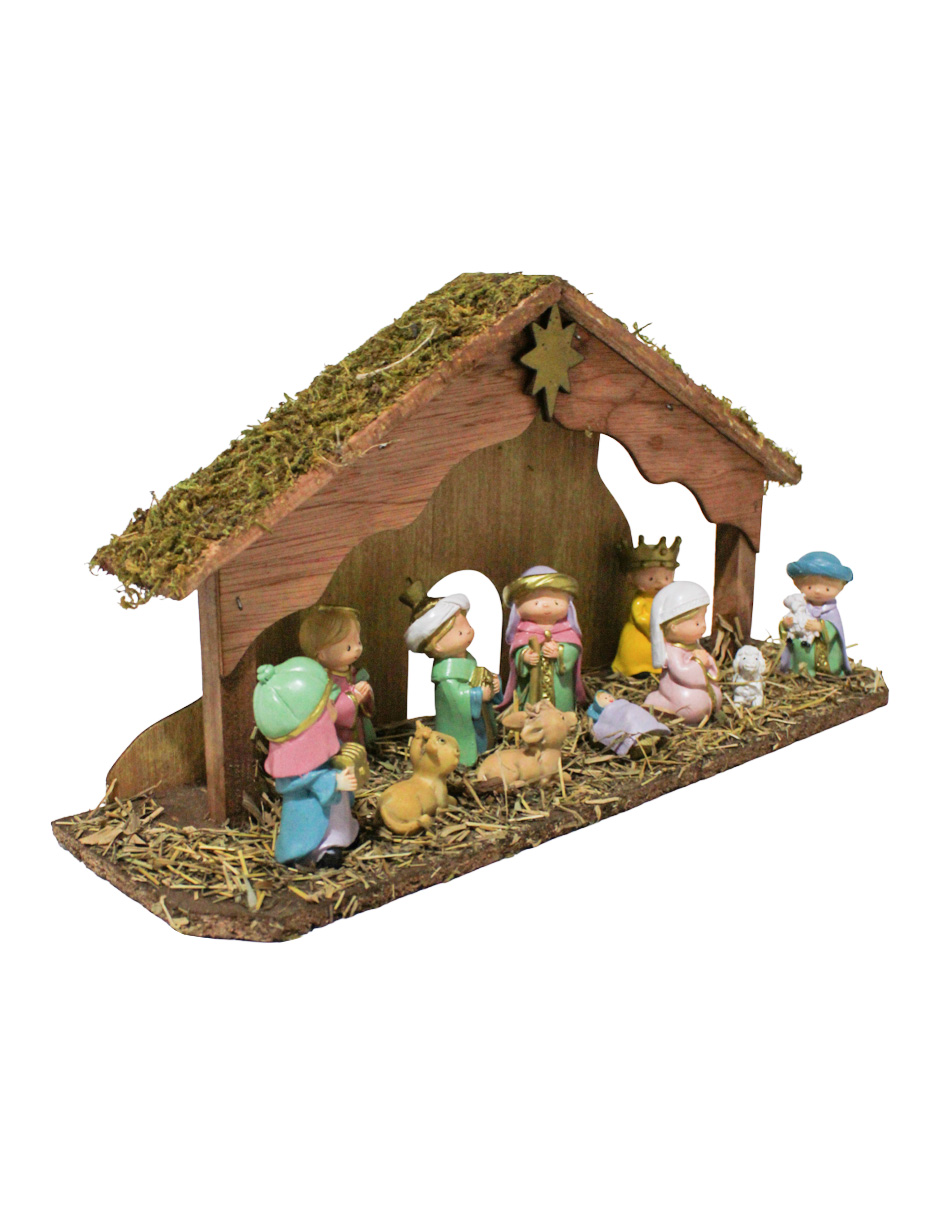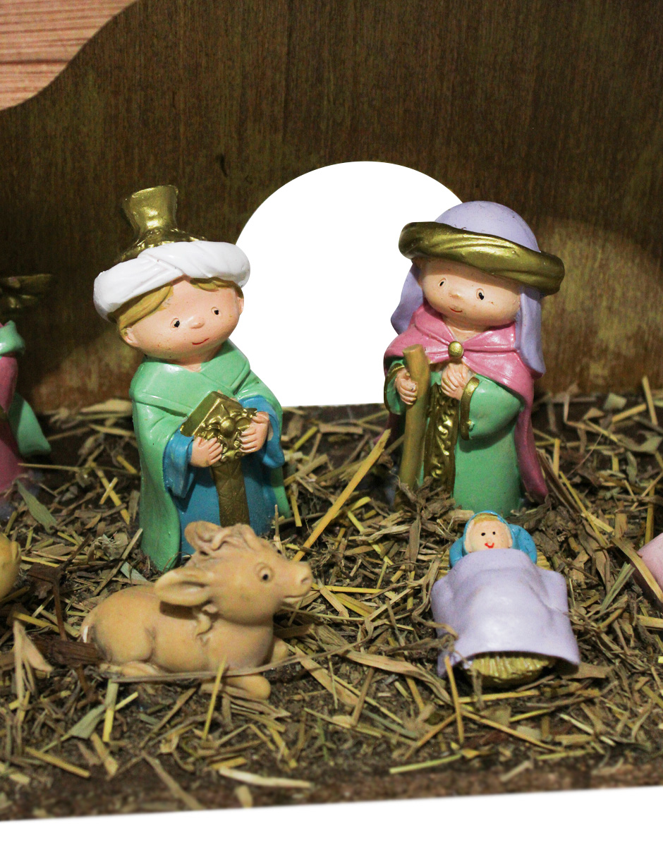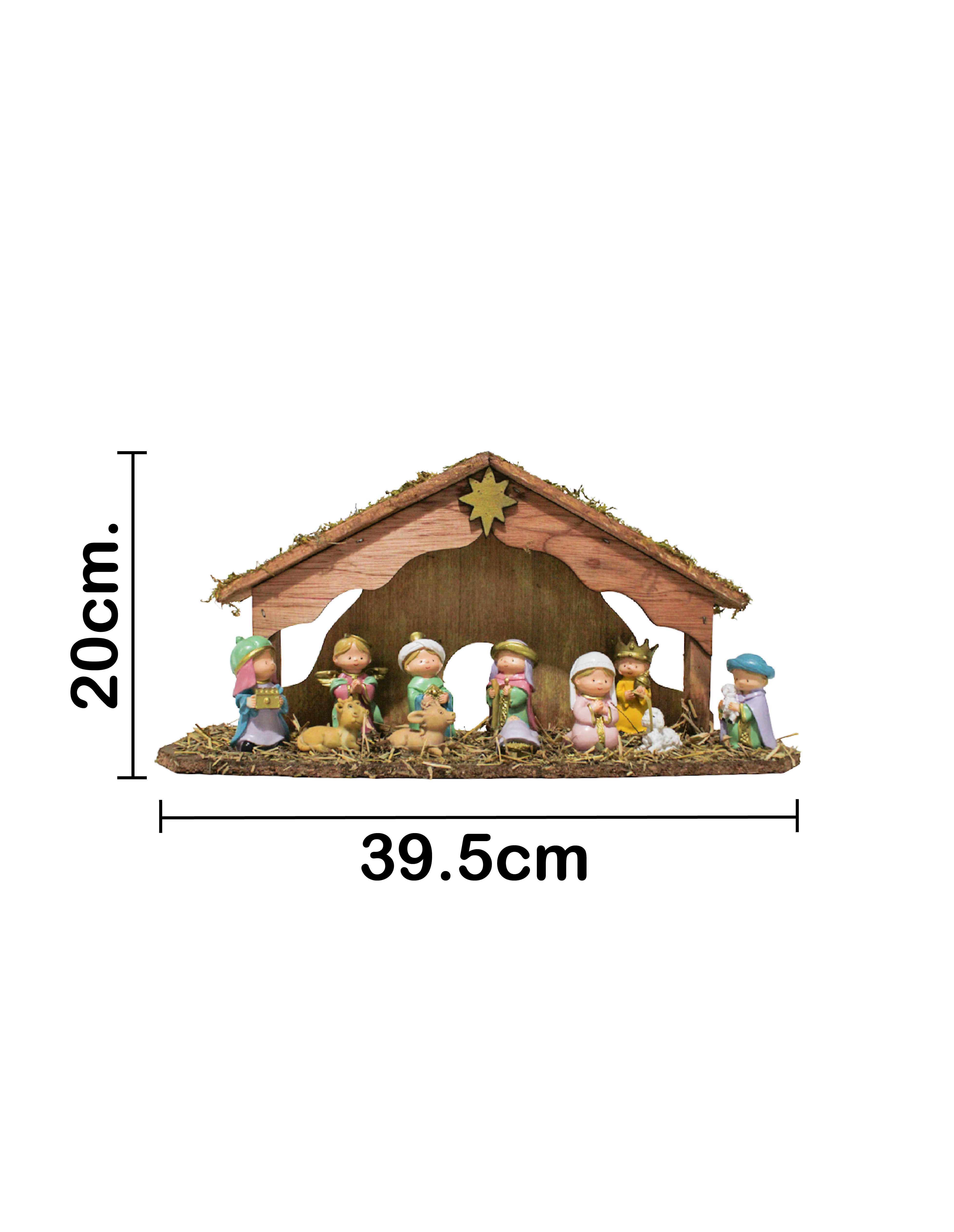 Un nacimiento decorativo de 40x12x20cm con una base de madera. Esta pieza es ideal para decorar tu hogar en la temporada navideña, aportando un toque de fe y tradición. Su diseño artesanal y su acabado natural lo convierten en un accesorio de alta calidad.