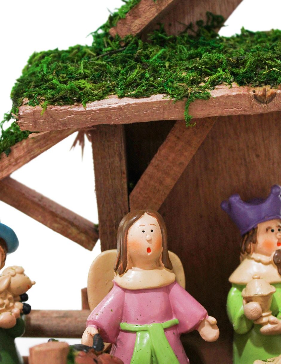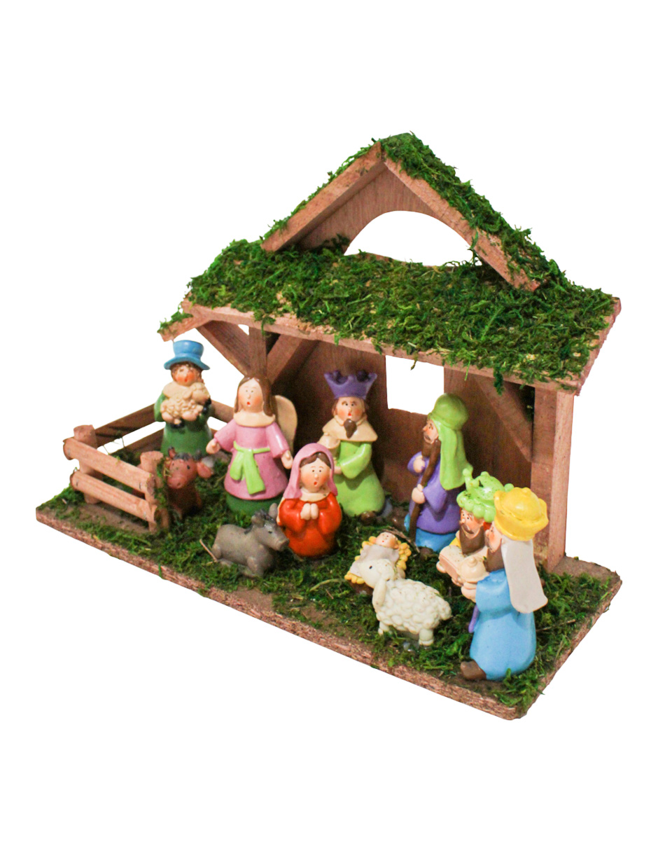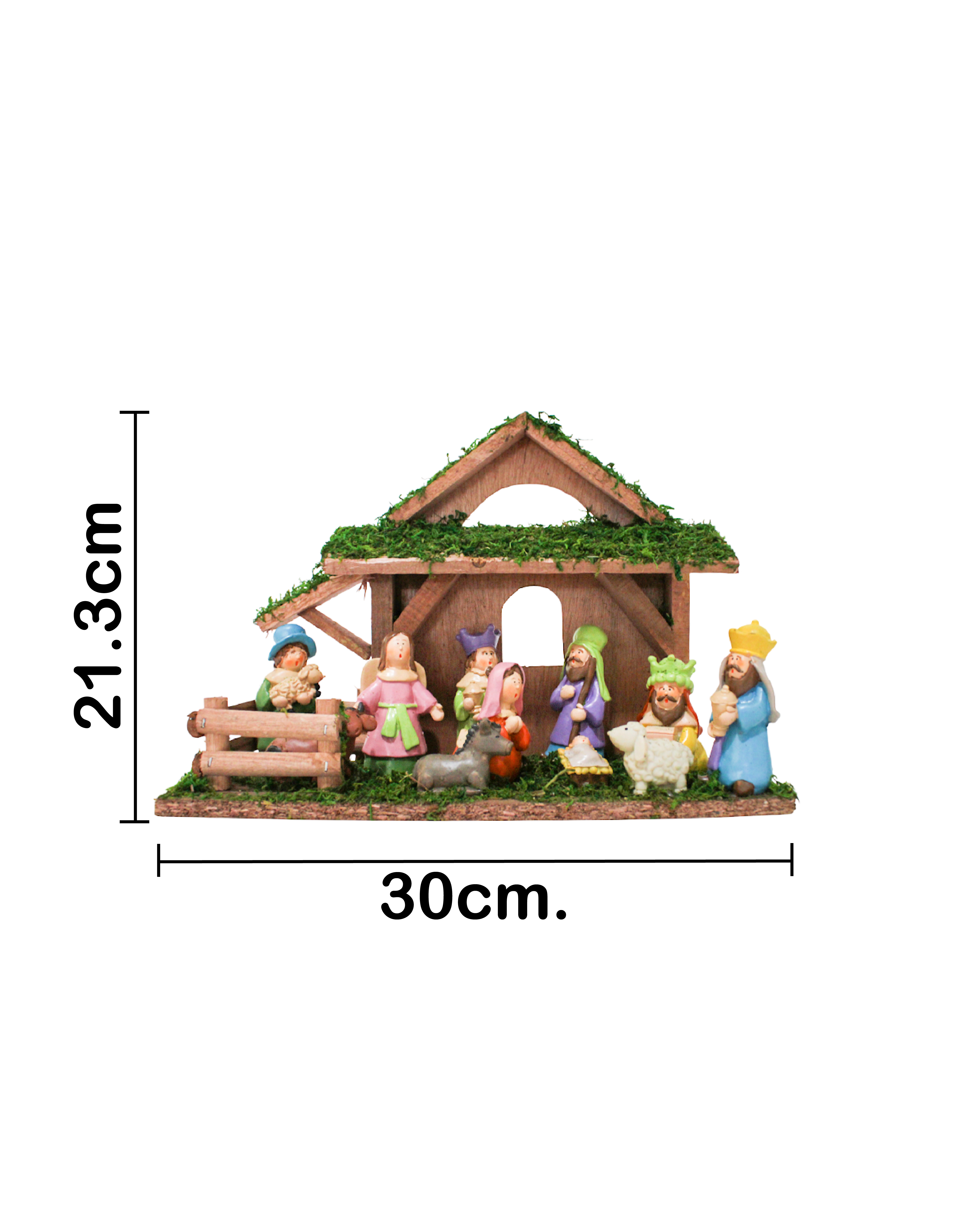 Un nacimiento decorativo de 30x12x20.5cm con una base de madera. Esta pieza es ideal para decorar tu hogar en la temporada navideña, aportando un toque de fe y tradición. Su diseño artesanal y su acabado natural lo convierten en un accesorio de alta calidad.