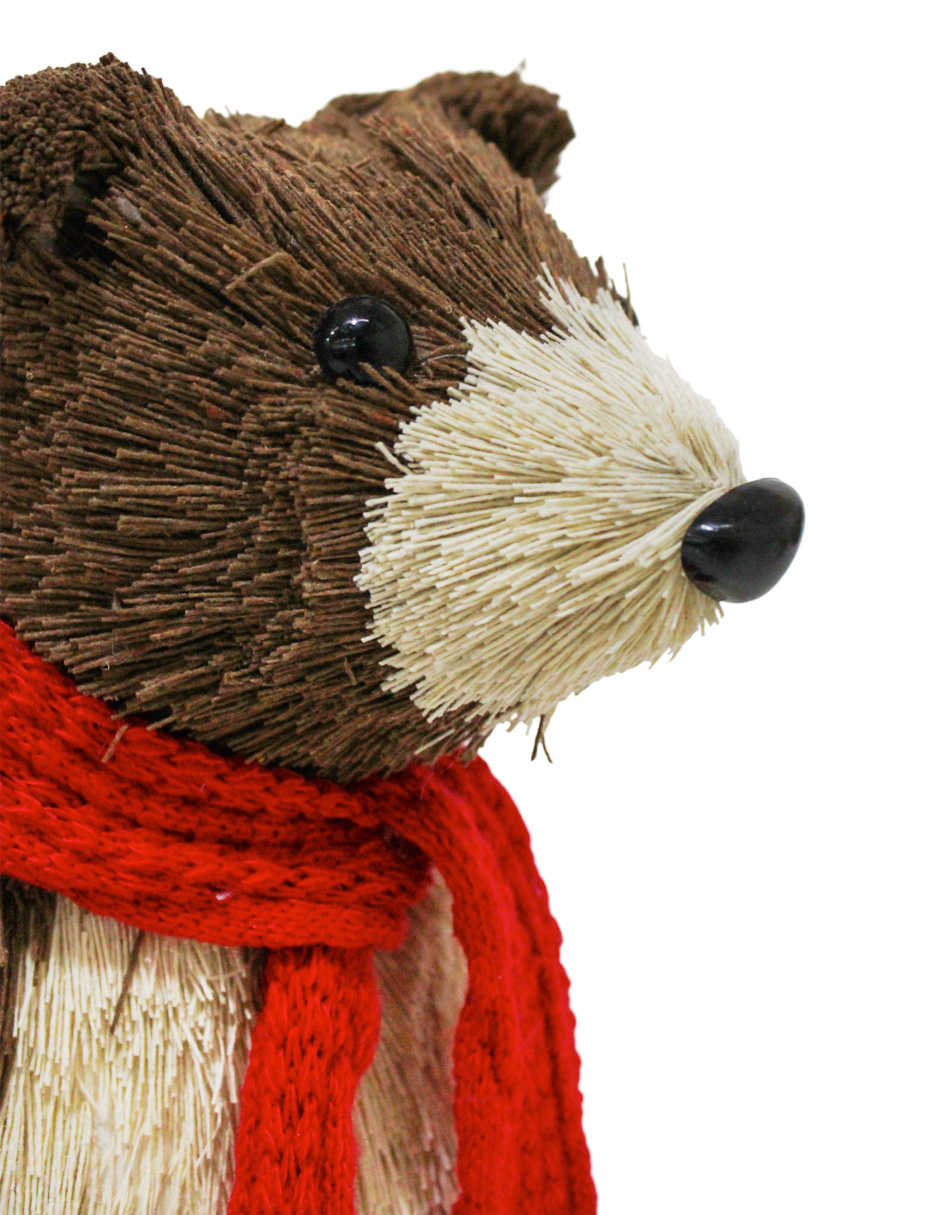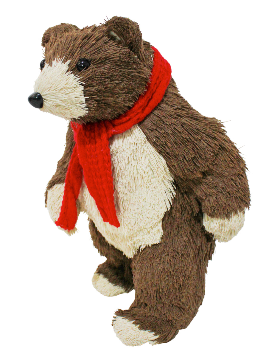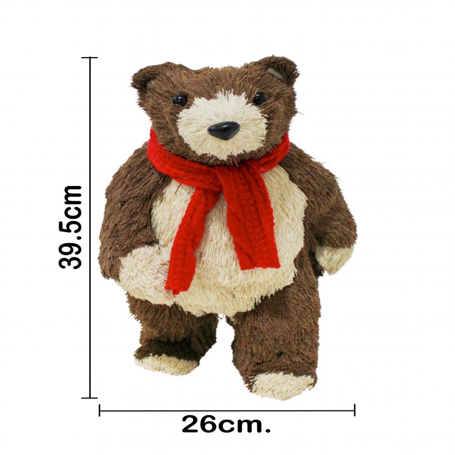 Oso de fibras café de pie con bufanda roja de 22x20x39cm