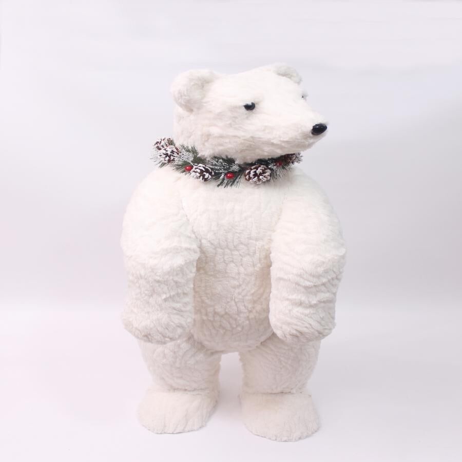 Un toque de elegancia festiva. Este oso polar parado de peluche con una corona, bayas rojas y piñas navideñas es la pieza perfecta para decorar tu hogar en la temporada festiva. Con sus medidas de 21x23x51cm, su diseño lleno de detalles evoca alegría y calidez.