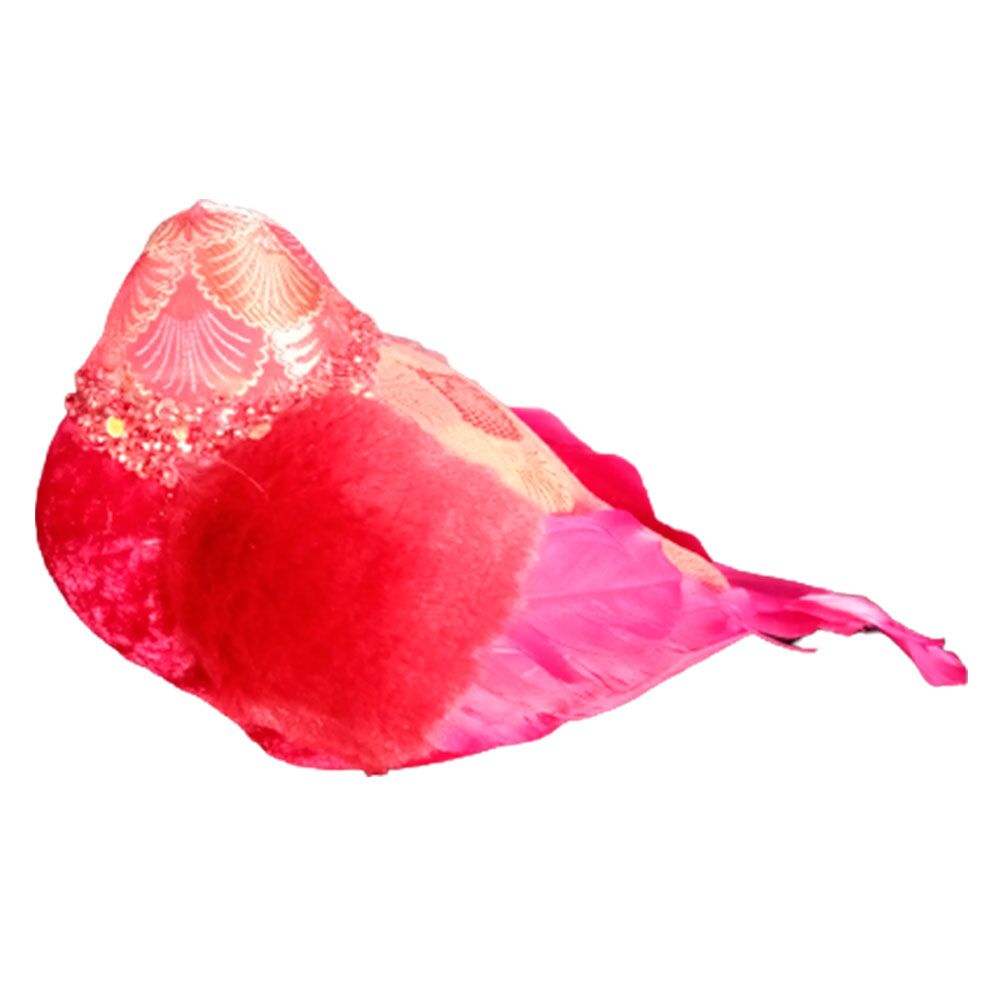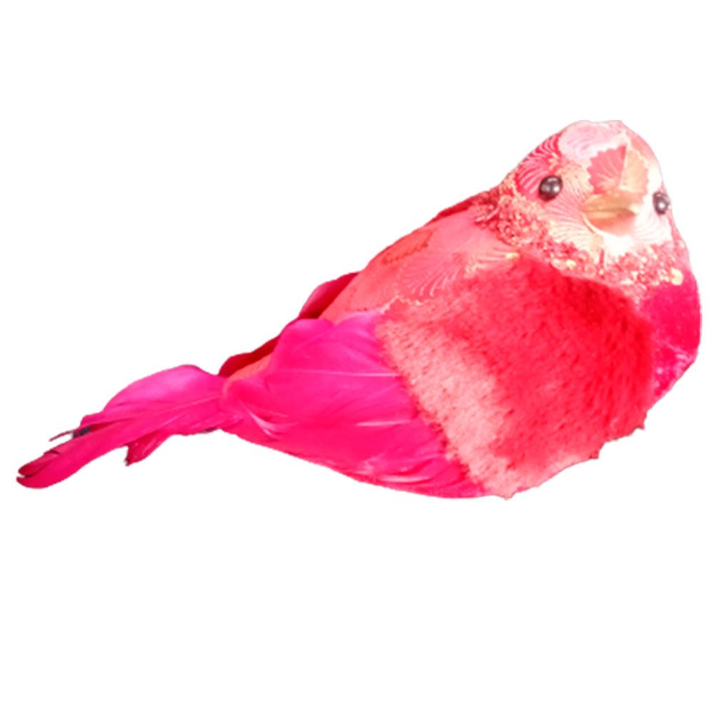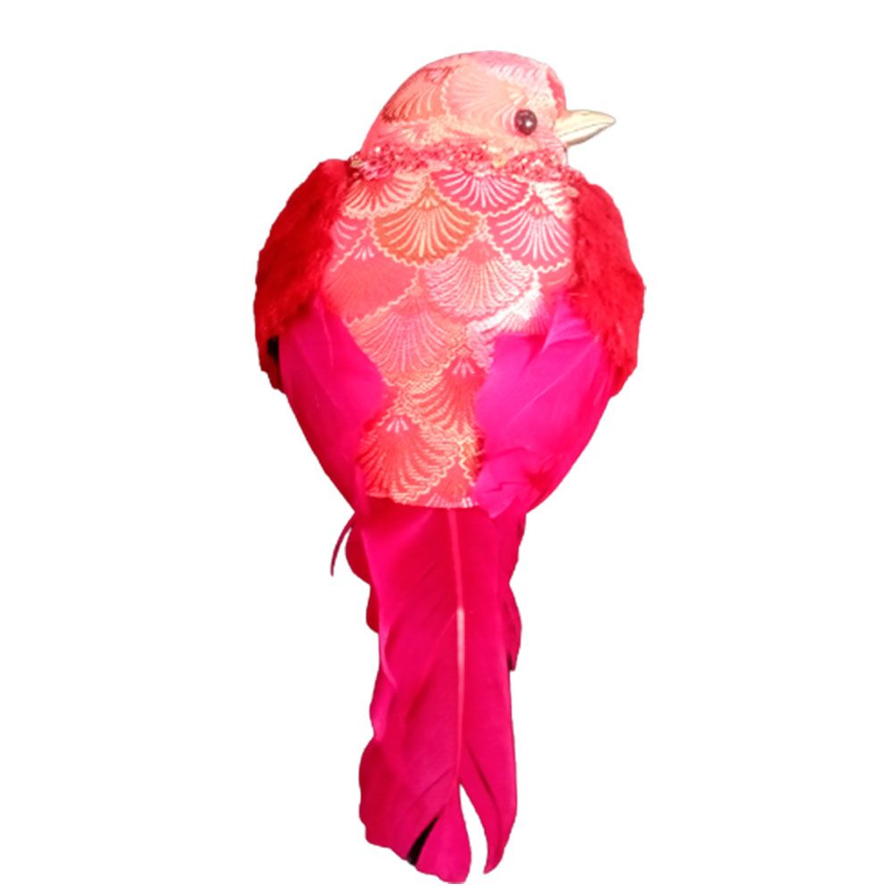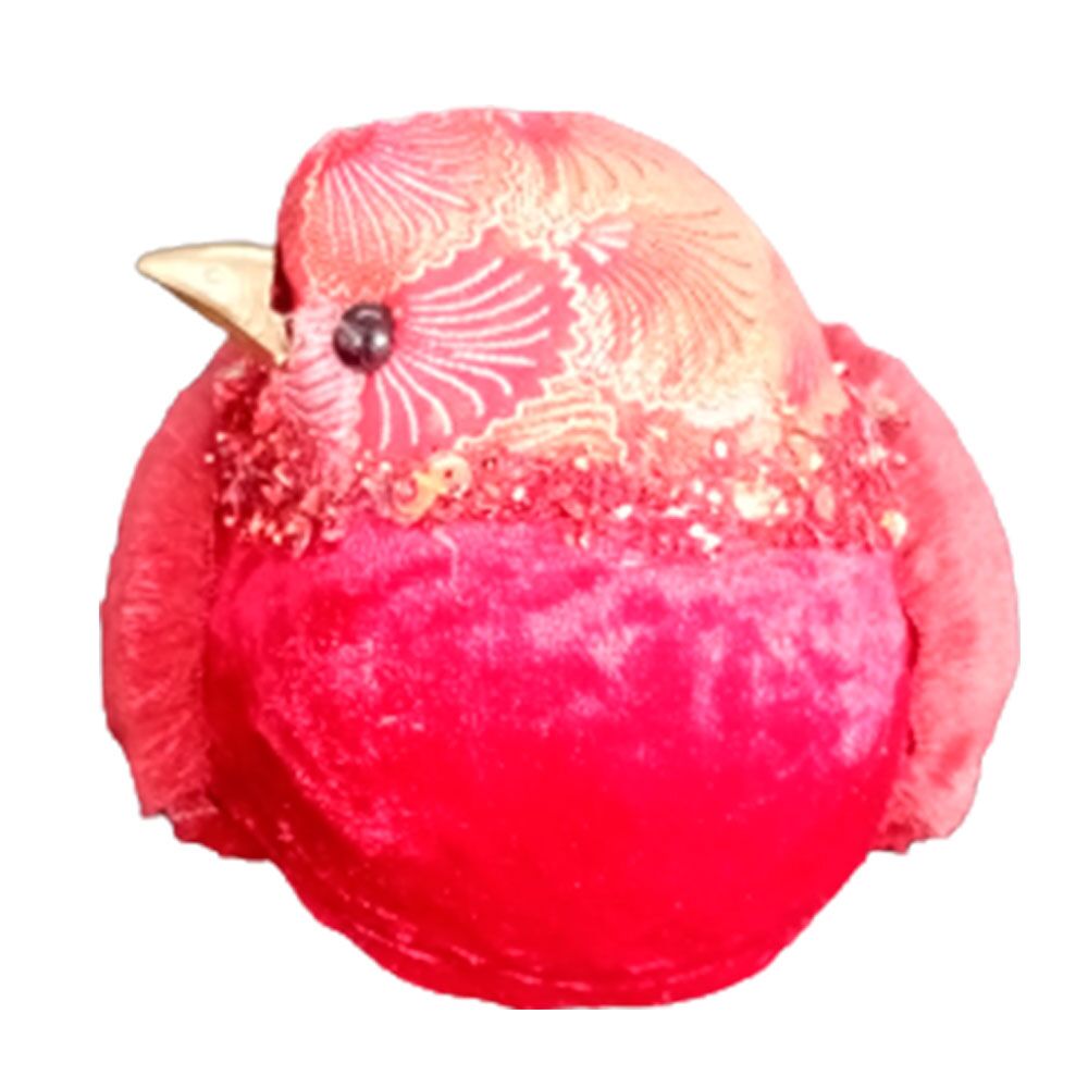 Pájaro forrado de tela roja con chaquiras 22x11x13cm