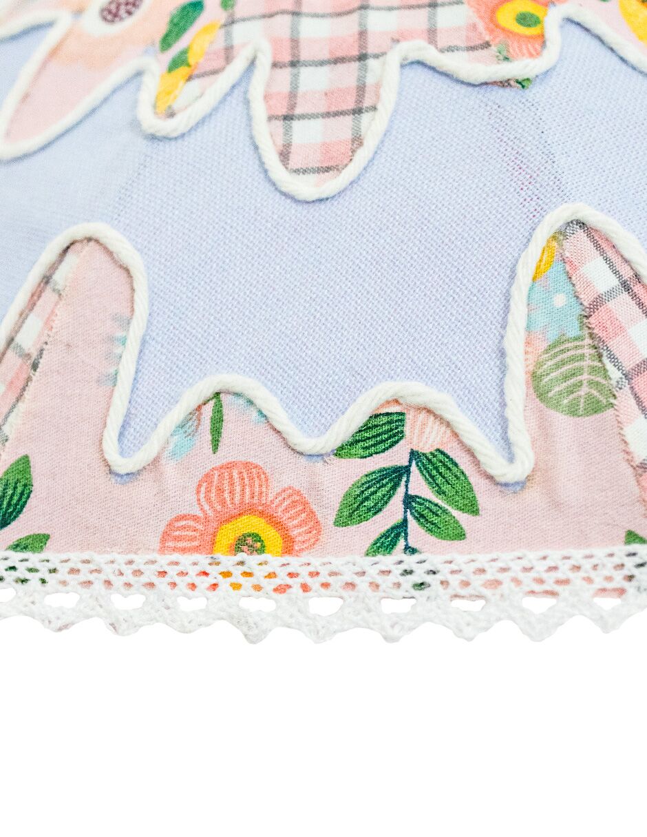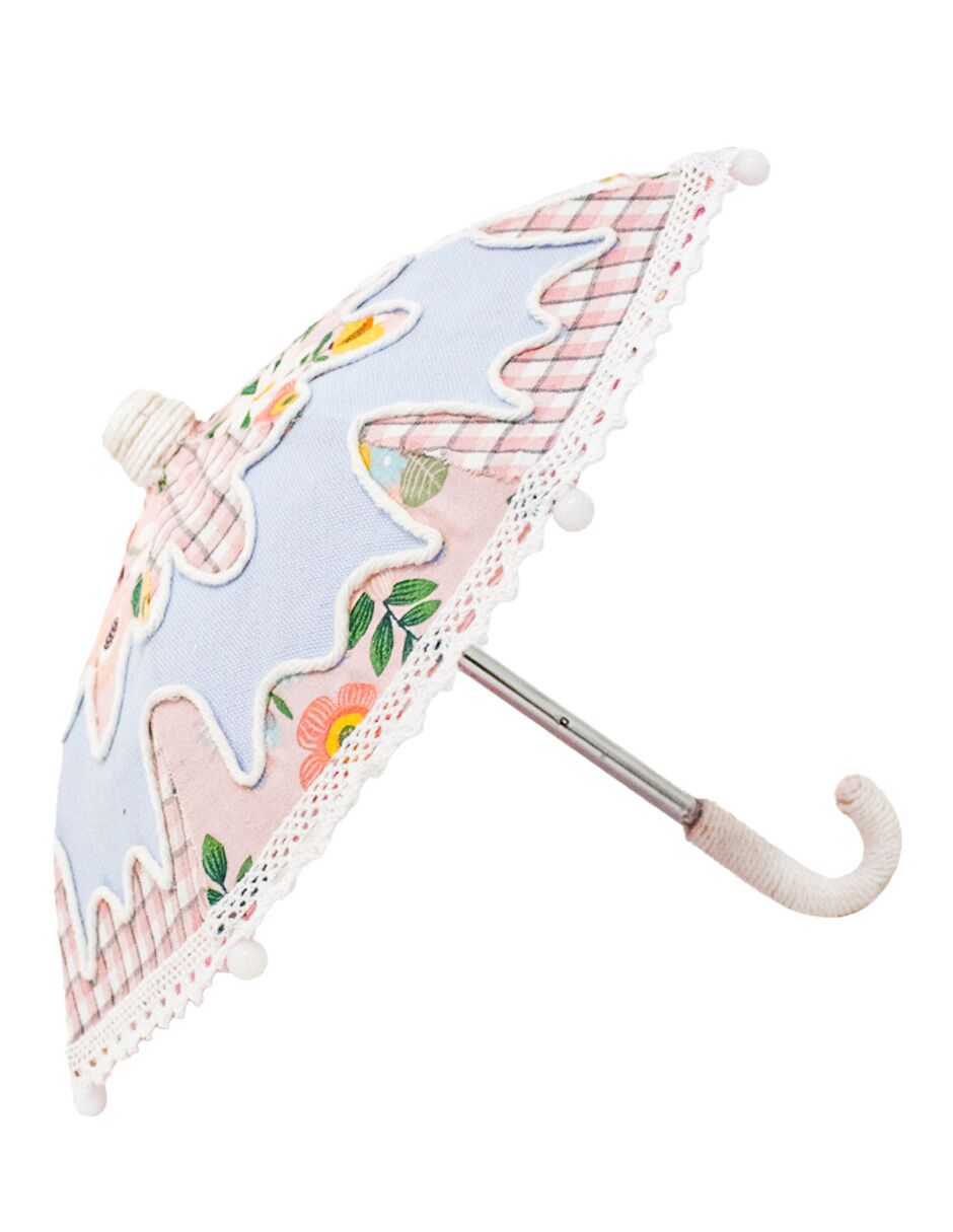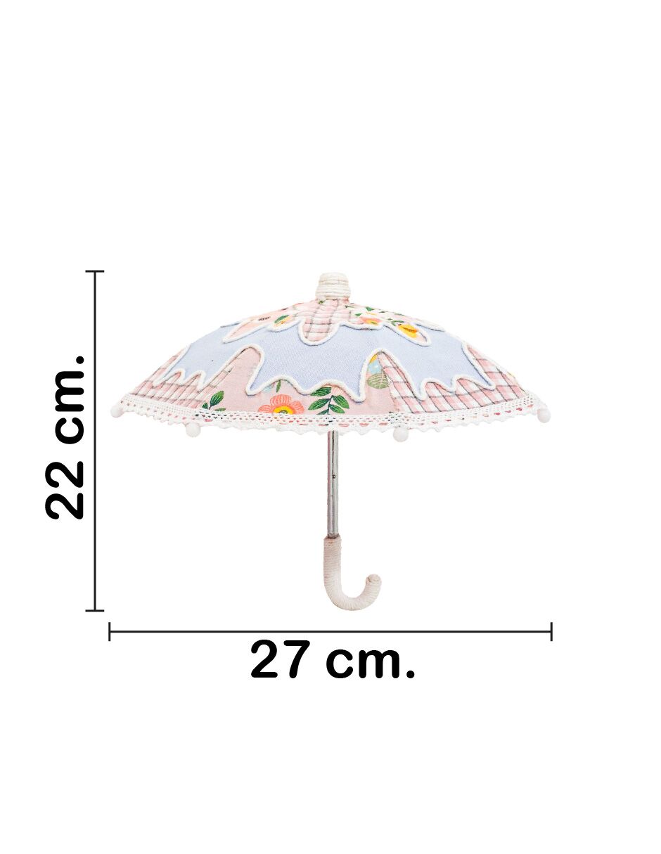 Paraguas decorativo de tela azul con rosa de 27x27x22cm