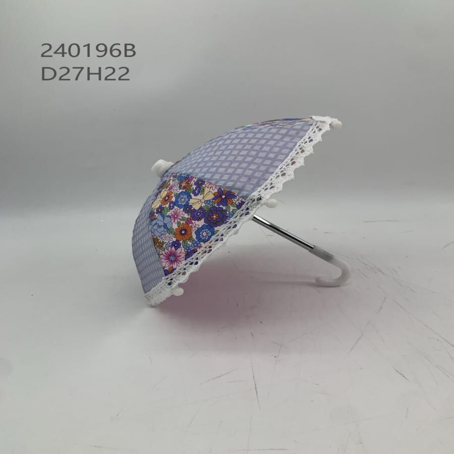 Paraguas decorativo de tela con cuadros azul con blanco y flores de 27x27x22cm