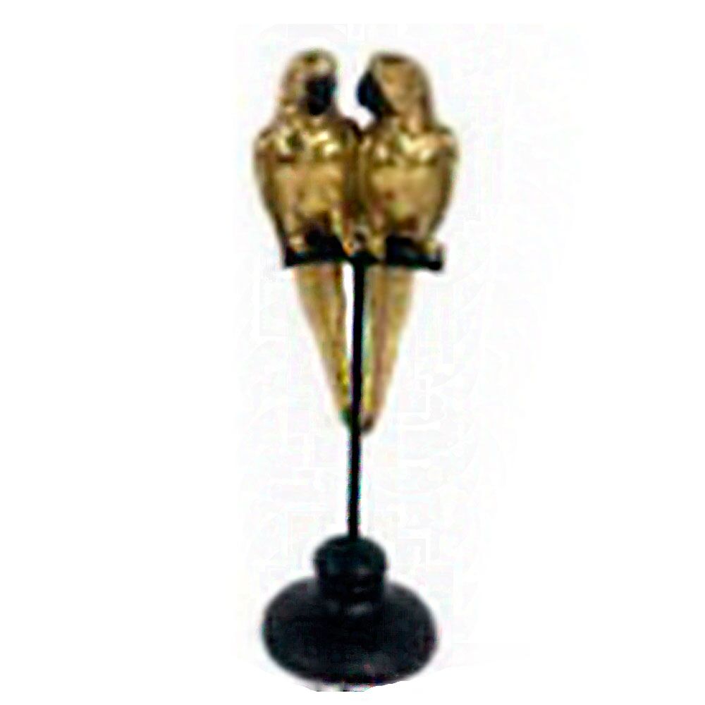 Pareja de loros de resina dorados sobre base de 8.5×8.5×28.1cm