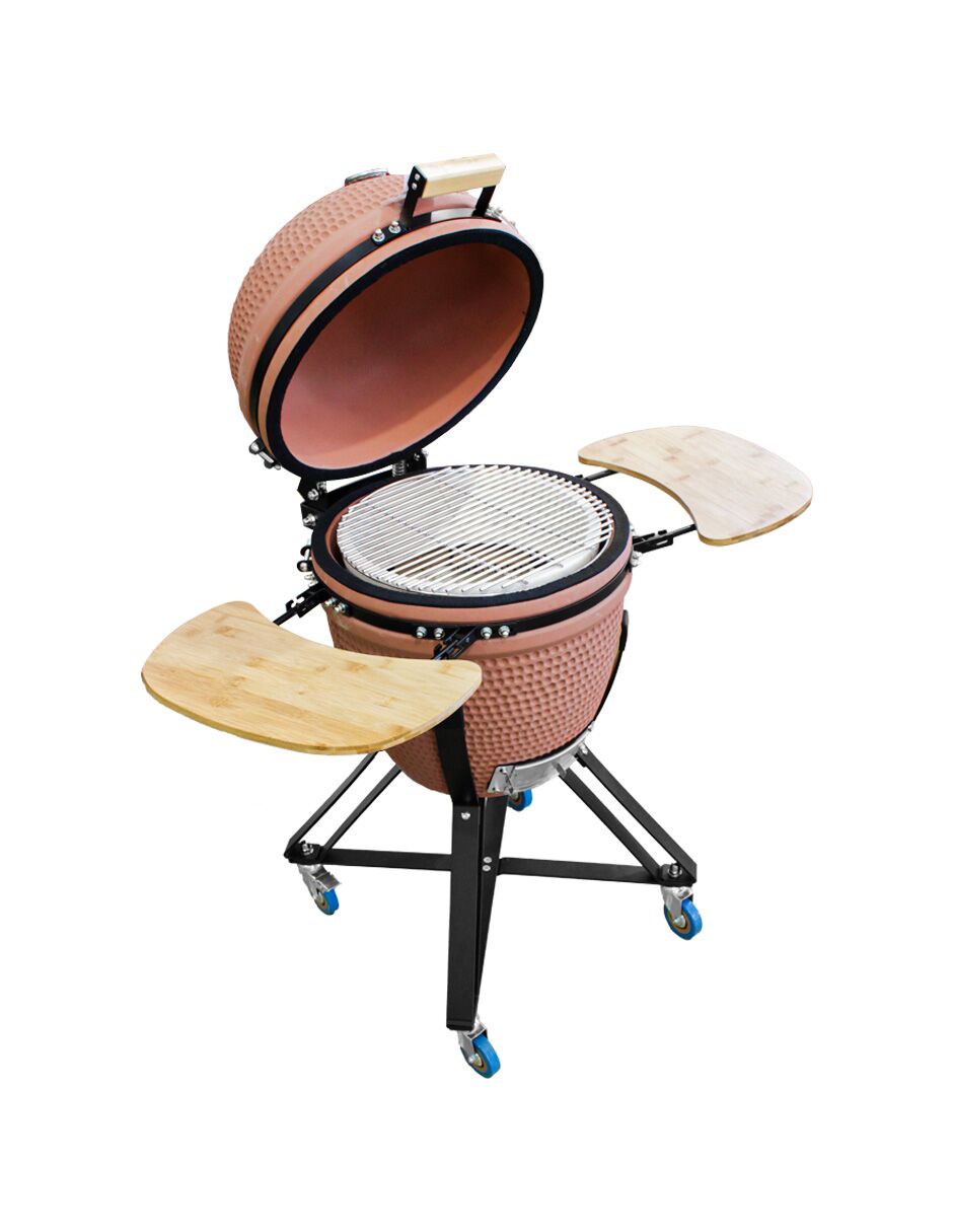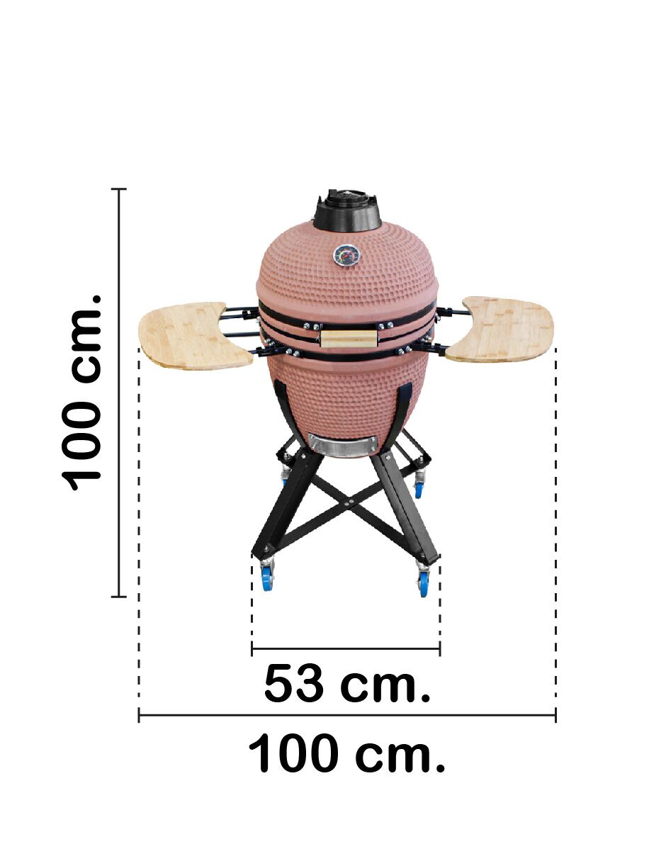 Esta parrilla de cerámica tipo Kamado es la herramienta ideal para los amantes de la cocina al aire libre. Su construcción de cerámica en un cálido color terracota le confiere una apariencia clásica y, lo más importante, una excelente retención de calor que permite cocinar de forma uniforme y precisa. Gracias a su diseño Kamado, es extremadamente versátil, sirviendo no solo para asar, sino también para ahumar, hornear y cocer a fuego lento. Sus dimensiones de 103.5x59x105/38.3/70.5cm la hacen lo suficientemente compacta para cualquier espacio, sin sacrificar la capacidad.