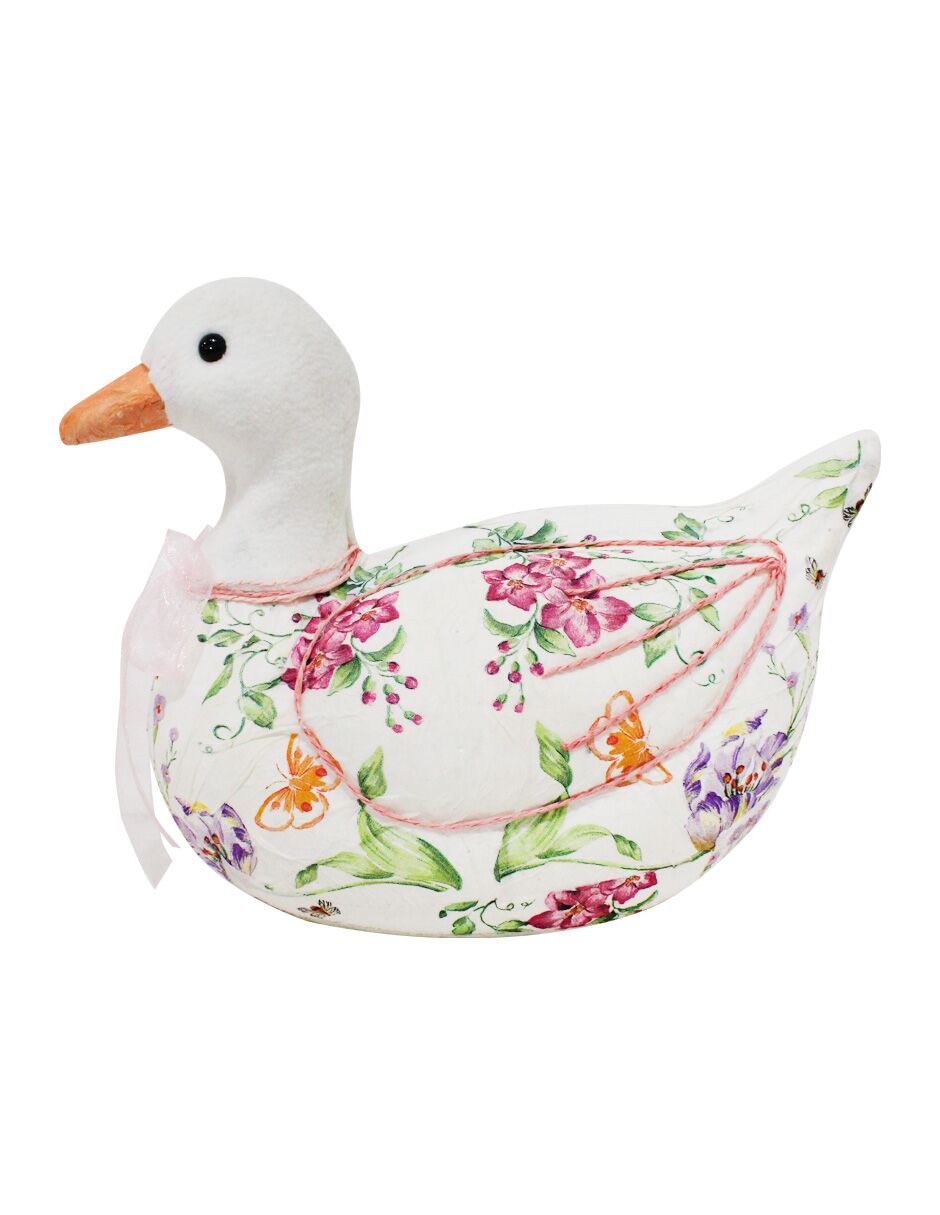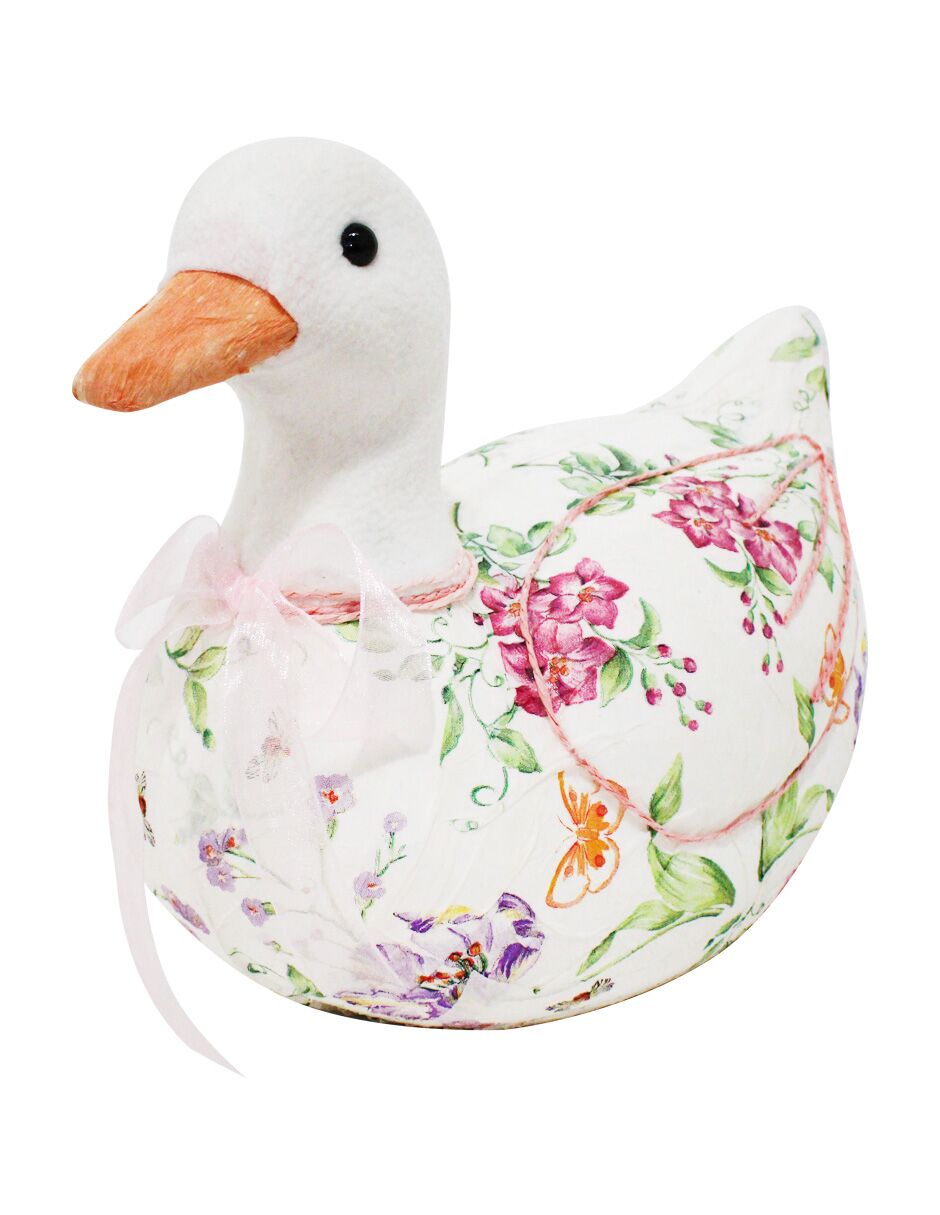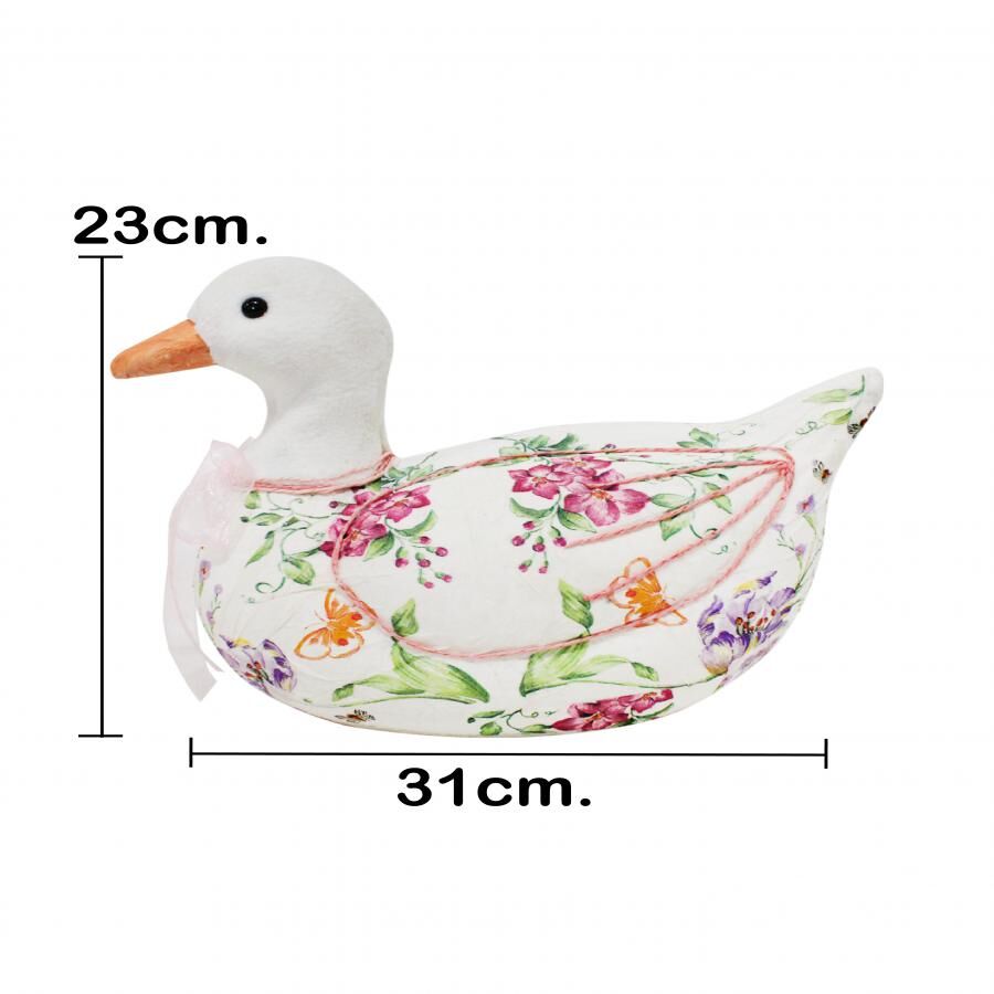 Pato forrado de papel con flores rosa de 31x15x23cm