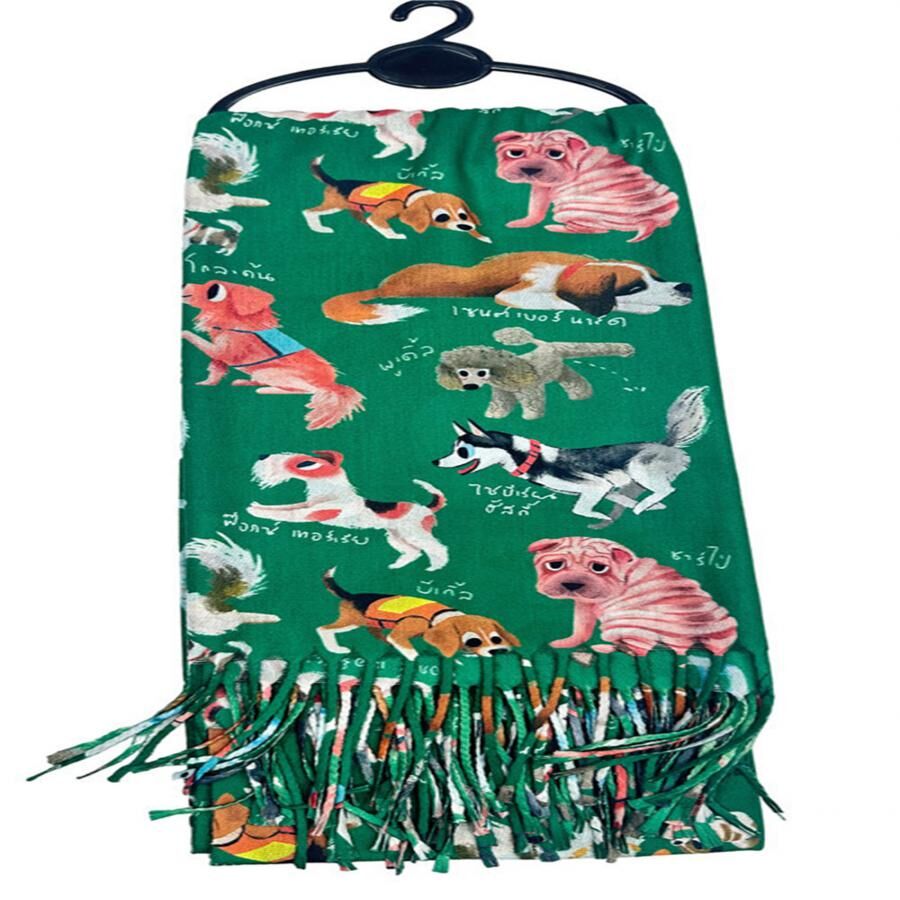 Envuelve tu cuello con el encanto de los mejores amigos del hombre y la suavidad inigualable de esta cautivadora pashmina. Su delicado estampado de razas caninas sobre un fondo verde es ideal para los amantes de los perros, añadiendo un toque de personalidad, ternura y sofisticación a cualquier atuendo. Es el accesorio perfecto para inyectar calidez, estilo y expresar tu pasión por los animales con un toque de color fresco. Material: Tela. Medidas: 68 x 177 x 0.1 cm.