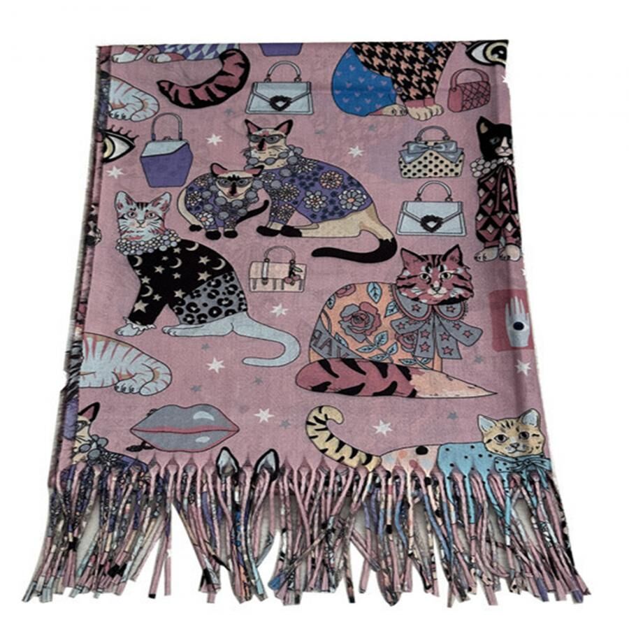 Envuelve tu cuello con el estilo juguetón y la suavidad inigualable de esta cautivadora pashmina. Su delicado estampado de gatos en poses fashion es ideal para los amantes de los felinos, añadiendo un toque de personalidad, diversión y sofisticación a cualquier atuendo. Es el accesorio perfecto para inyectar calidez, moda y expresar tu amor por los animales. Material: Tela. Medidas: 68 x 177 x 0.1 cm.