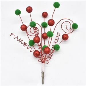Un festivo pick con pinza de bolitas verdes con rojo. Es ideal para añadir un toque de color y un estilo alegre a tus arreglos, llenando cualquier espacio de un estilo único y encantador. Material: plástico. Medidas: 24 x 10 x 4 cm.