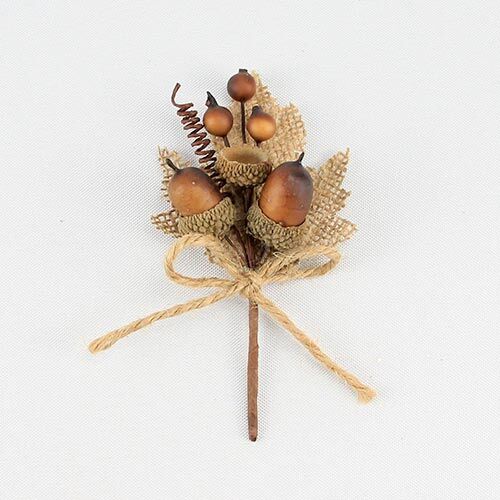 Un rústico pick de bellotas y hojas de yute. Es ideal para dar un toque de naturaleza y un estilo rústico a tus arreglos florales y decoraciones, llenando cualquier espacio de un estilo único y cálido. Material: plástico y yute. Medidas: 6 x 12 x 3 cm.