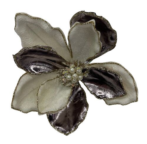 Inyecta el lujo sutil y la sofisticación invernal a tu decoración con esta deslumbrante vara de magnolia. Su diseño en tono nacarado se combina con un acabado café platinado, creando una pieza de máxima distinción y brillo, ideal para floreros, árboles de Navidad o acentos de gala. Es el toque perfecto para infundir calidez, elegancia y un ambiente suntuoso. Material: Plástico con Acabado Nacarado y Platinado. Medidas: 20 x 18 x 0.1 cm.