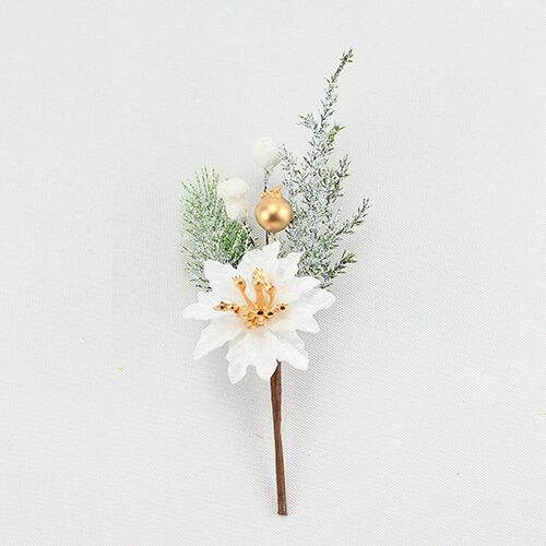 Siente la magia de la Navidad con este festivo pick de Nochebuena blanco. Su acabado brilloso y follaje nevado te hará sentir la fantasía y el encanto. Es ideal para decorar tus arreglos, centros de mesa o el árbol, creando un ambiente de cuento de hadas.