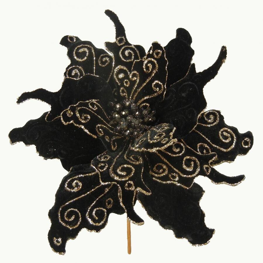 Pick de nochebuena de terciopelo negro con dorado diamantado de 27.94×27.94×22.86cm