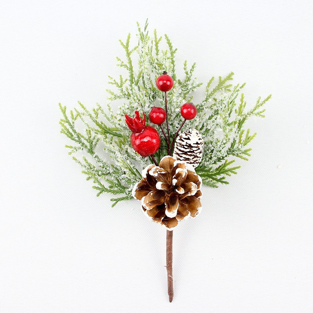 Siente la magia del invierno con este festivo pick navideño. Su diseño con piñas y hojas nevadas con berries rojos te hará sentir la tranquilidad y la fantasía. Con una longitud de 16 cm, es ideal para decorar el árbol, guirnaldas o centros de mesa.