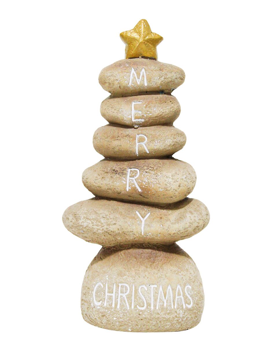 Piedras de poliresina formando árbol y palabra Merry Christmas de 12.5x7x25cm